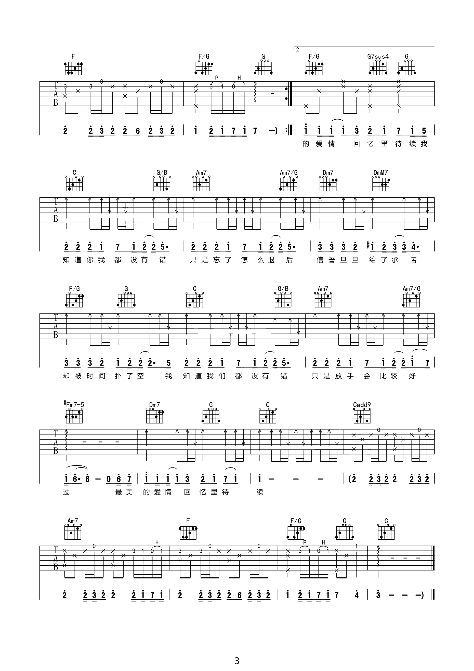 孟凡明《只只》吉他谱 C调六线谱 图片