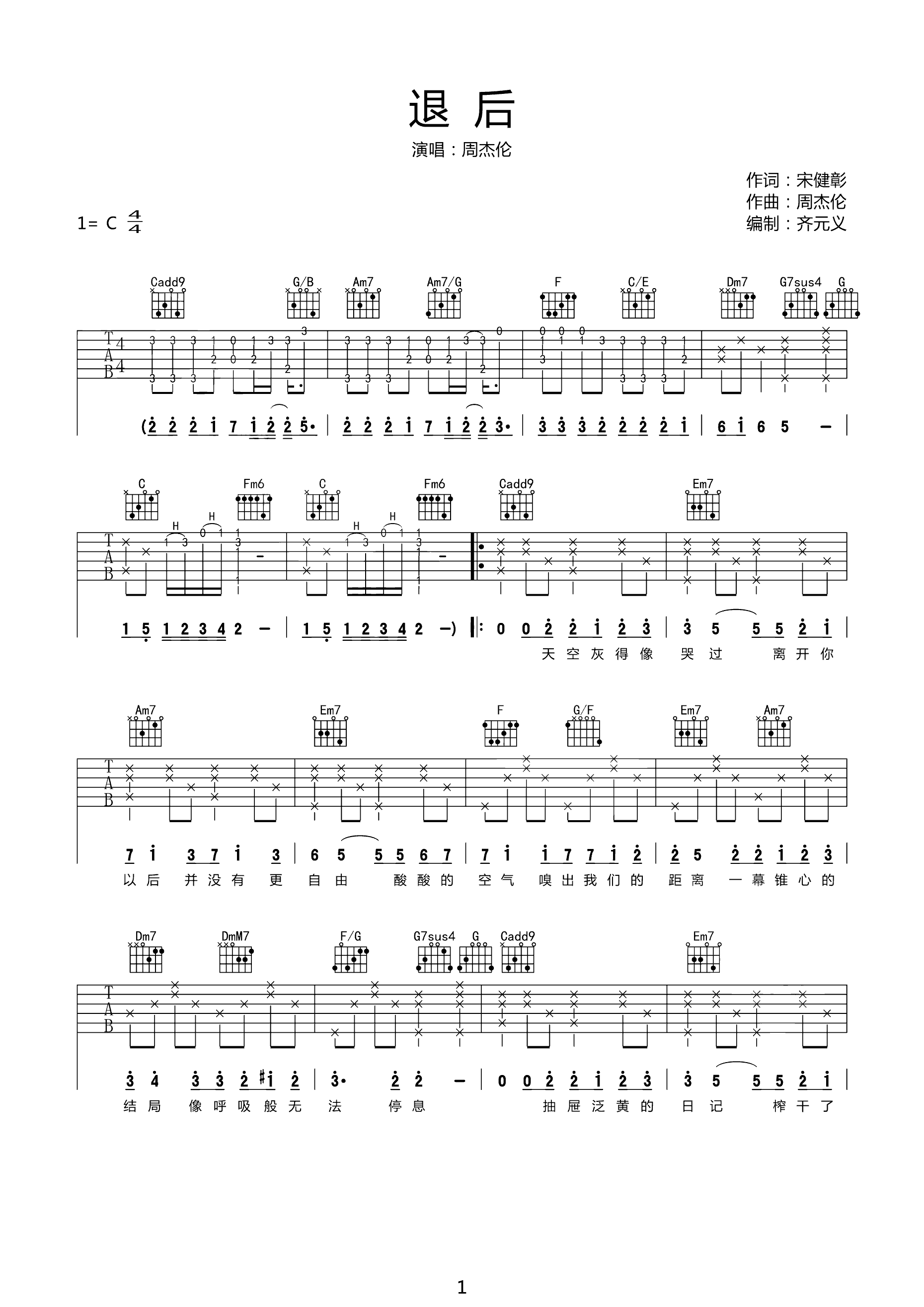 吉他谱 | 热门弹唱《退后》