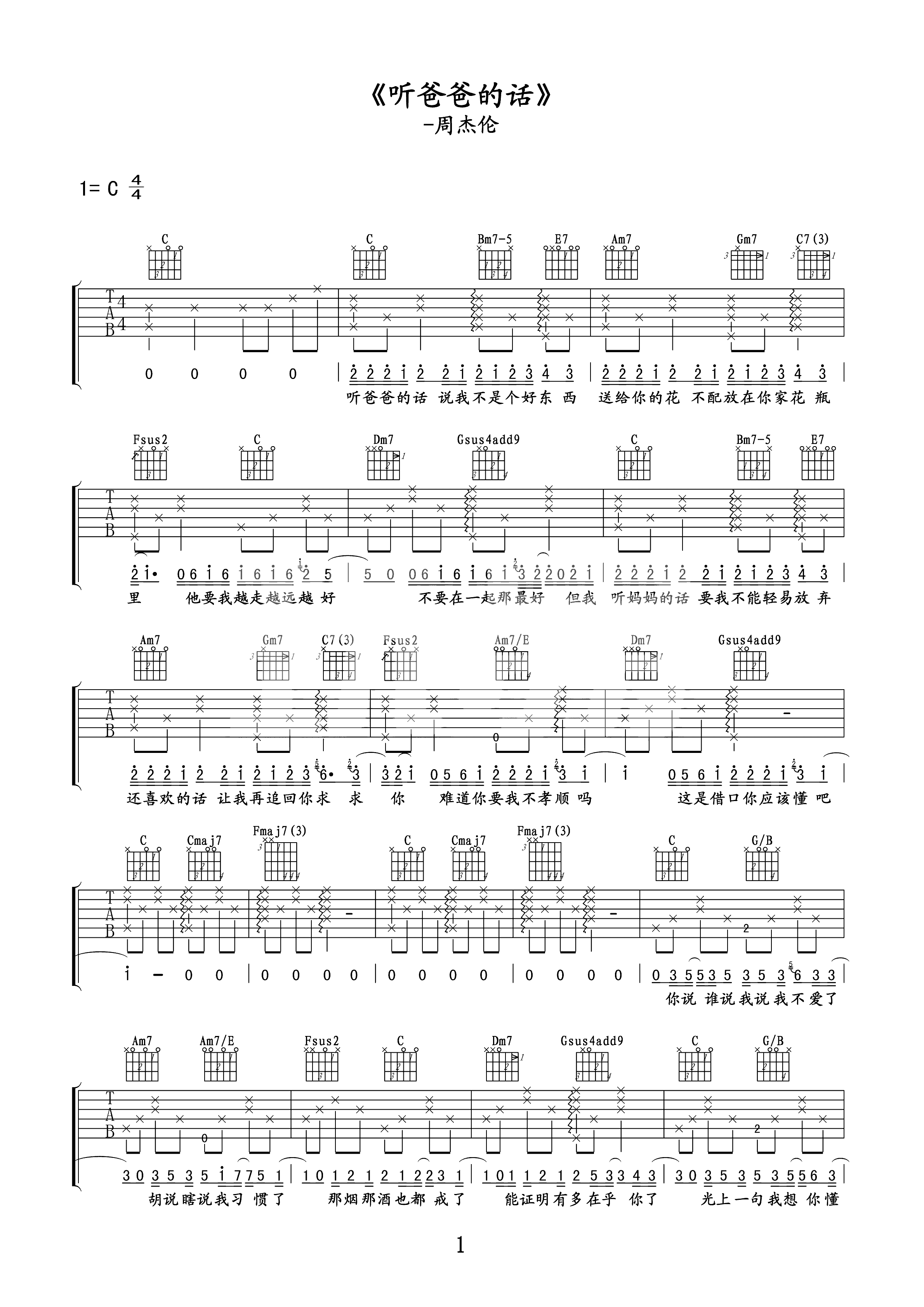 吉他谱 | 热门弹唱《听爸爸的话》