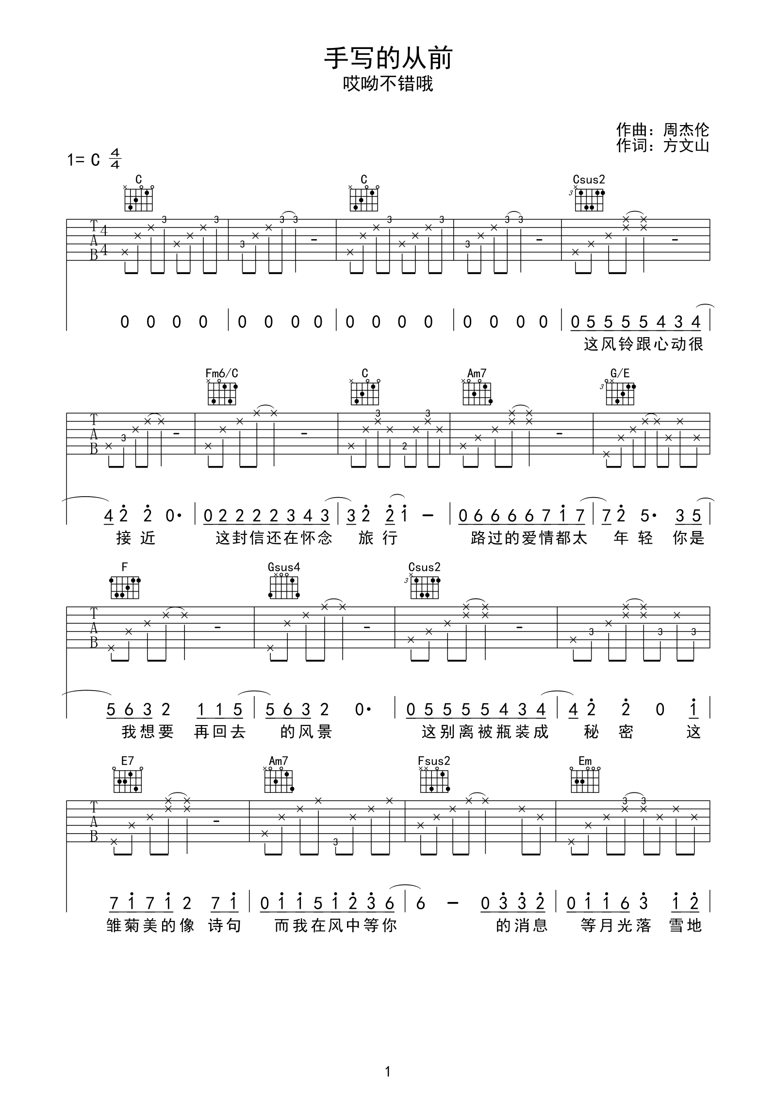 吉他谱 | 热门弹唱《手写的从前》