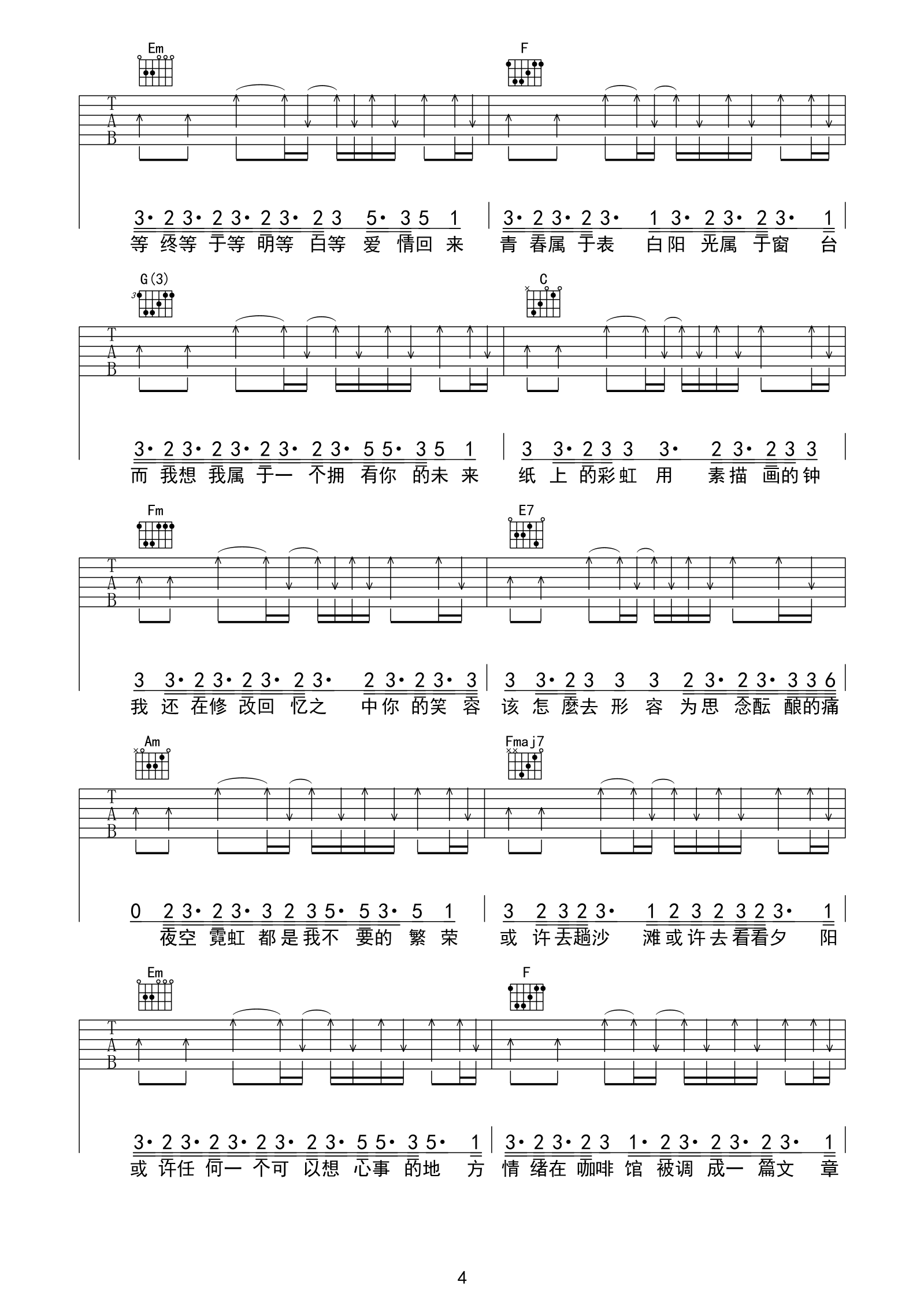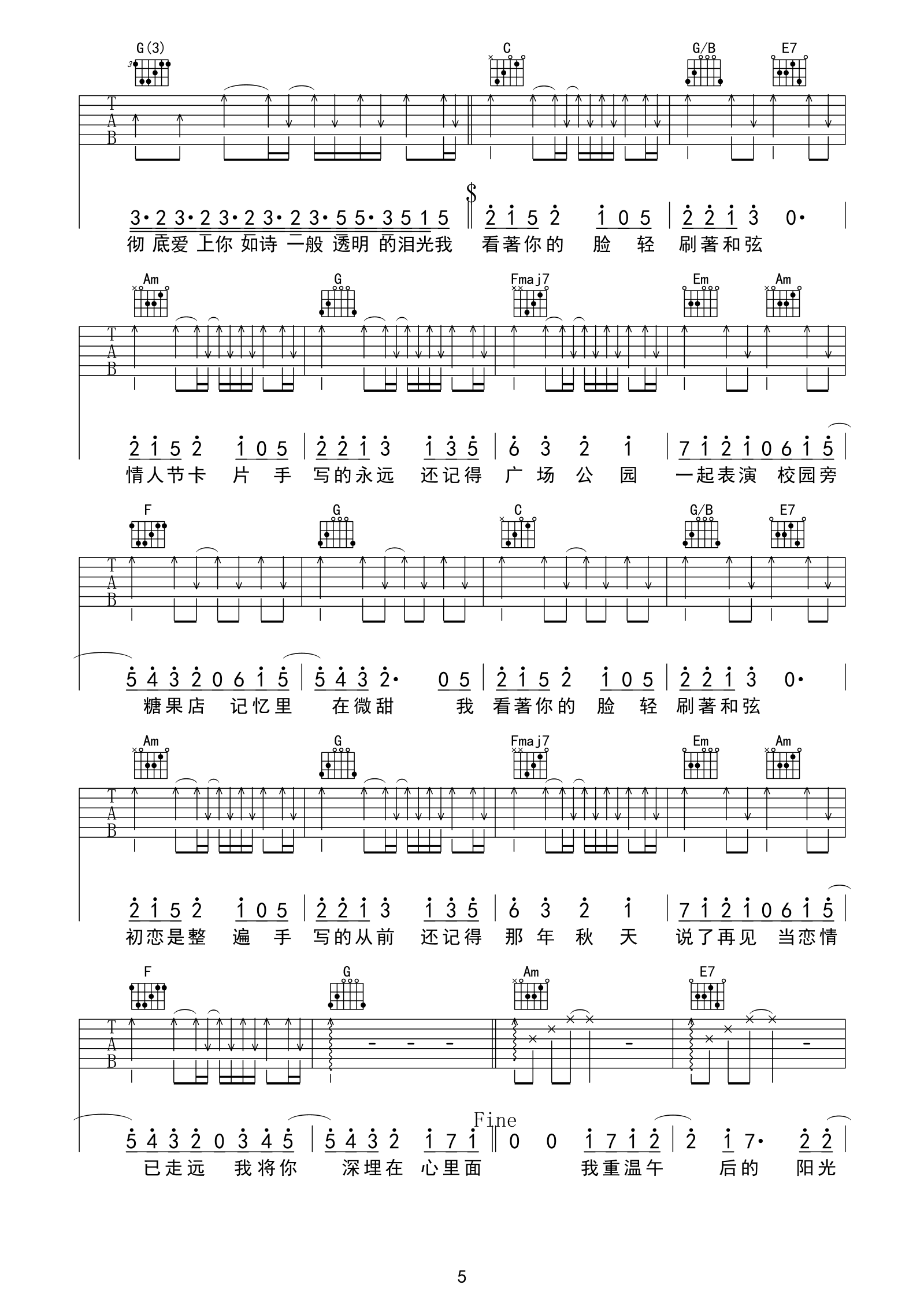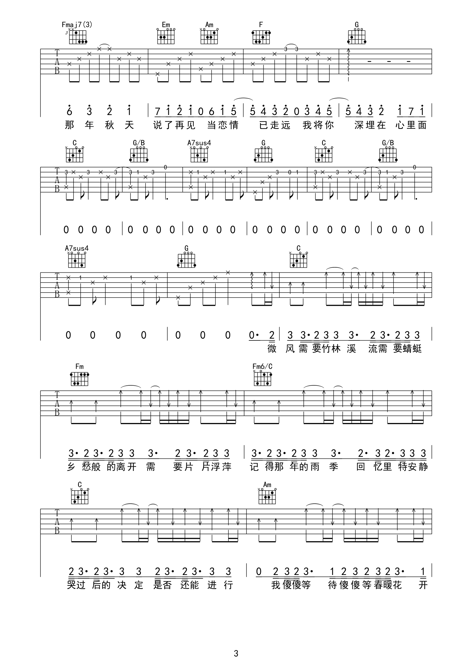 第一个清晨吉他谱
