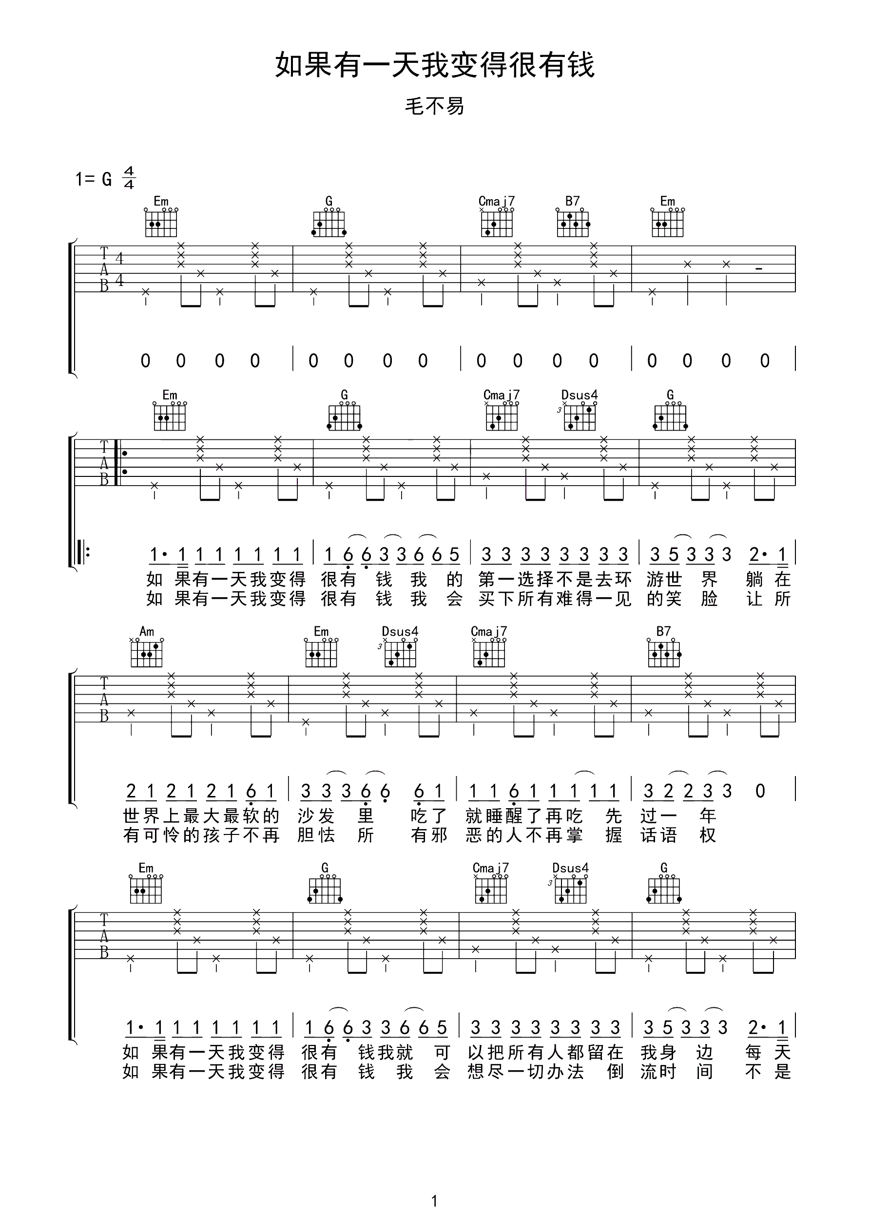 吉他谱 | 热门弹唱《如果有一天我变得很有钱》