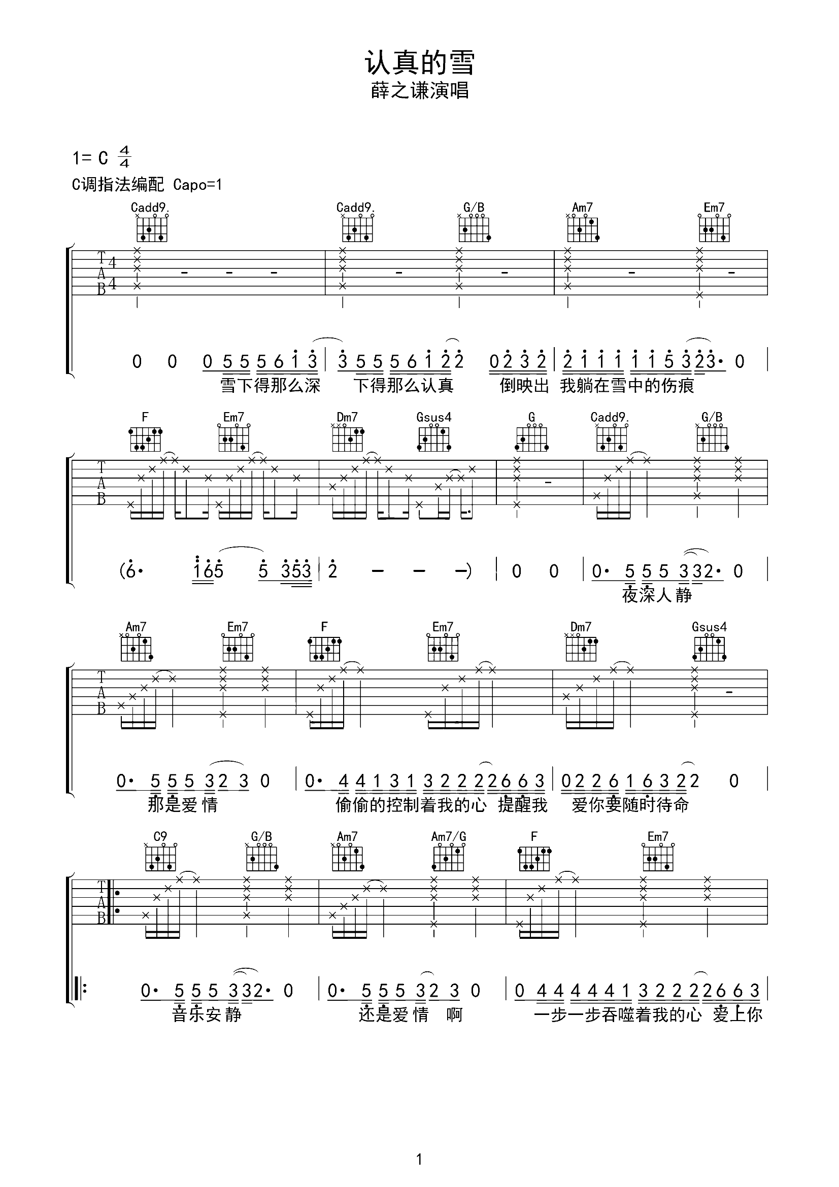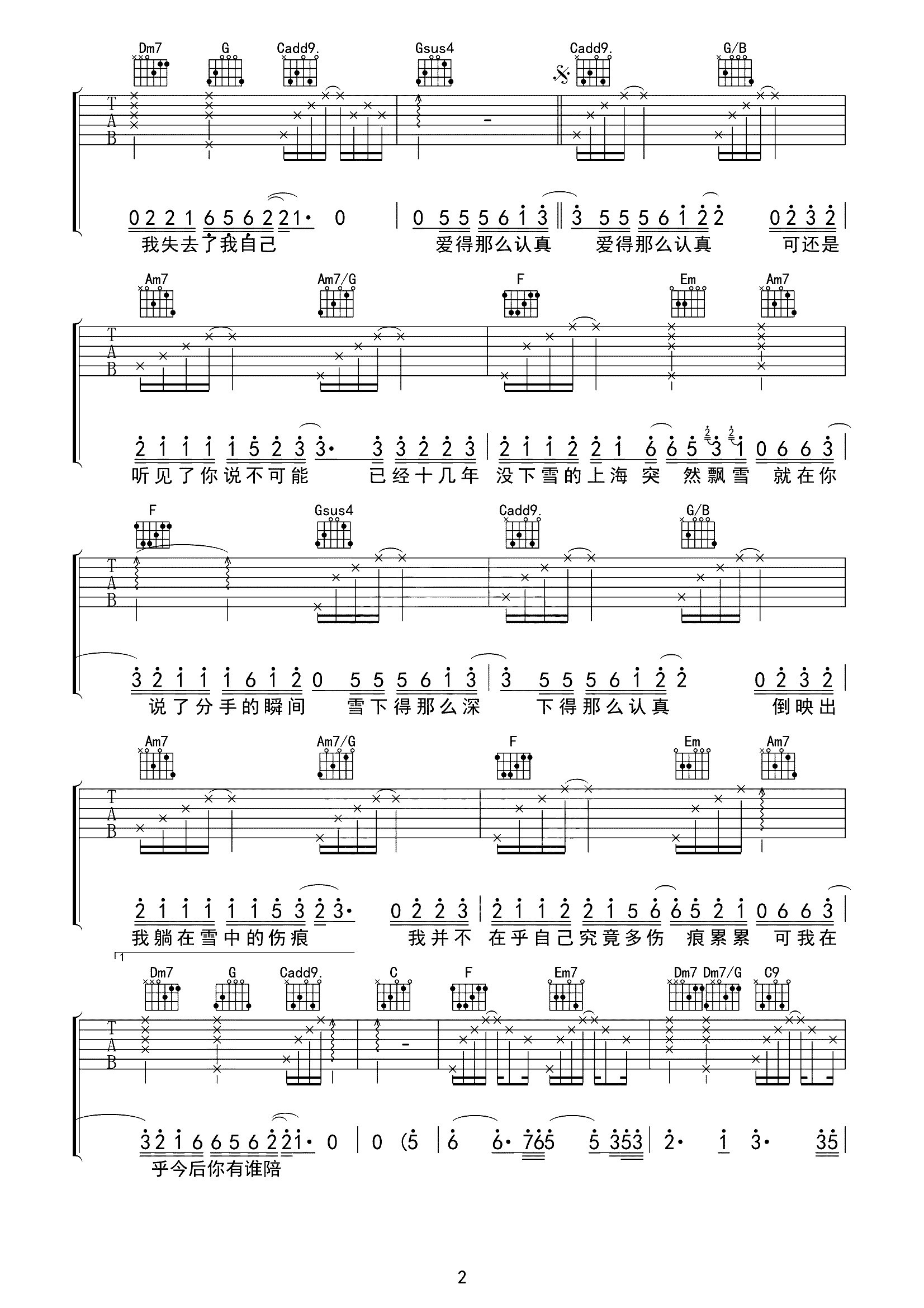 吉他谱 | 热门弹唱《认真的雪》