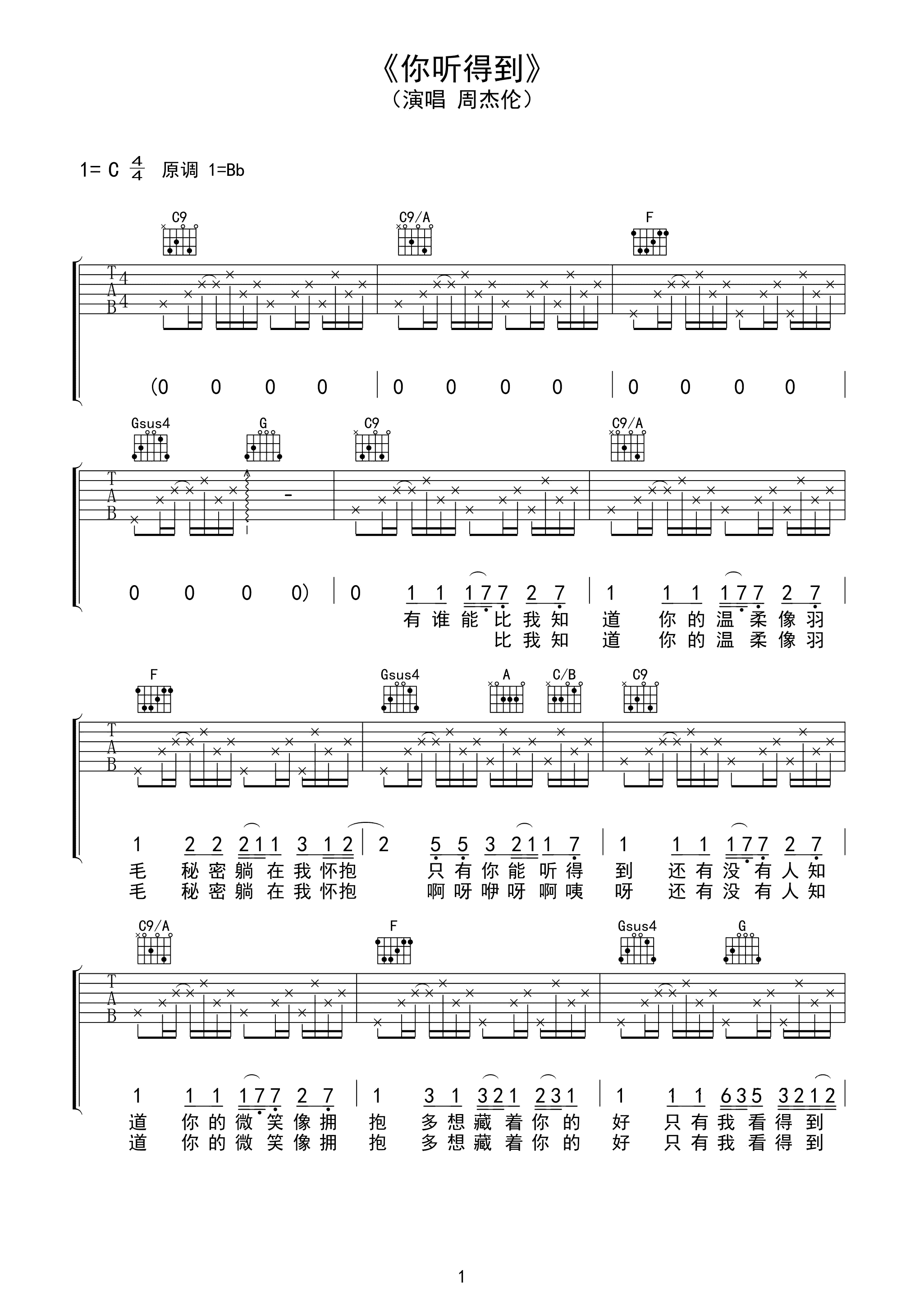 吉他谱 | 热门弹唱《你听得到》