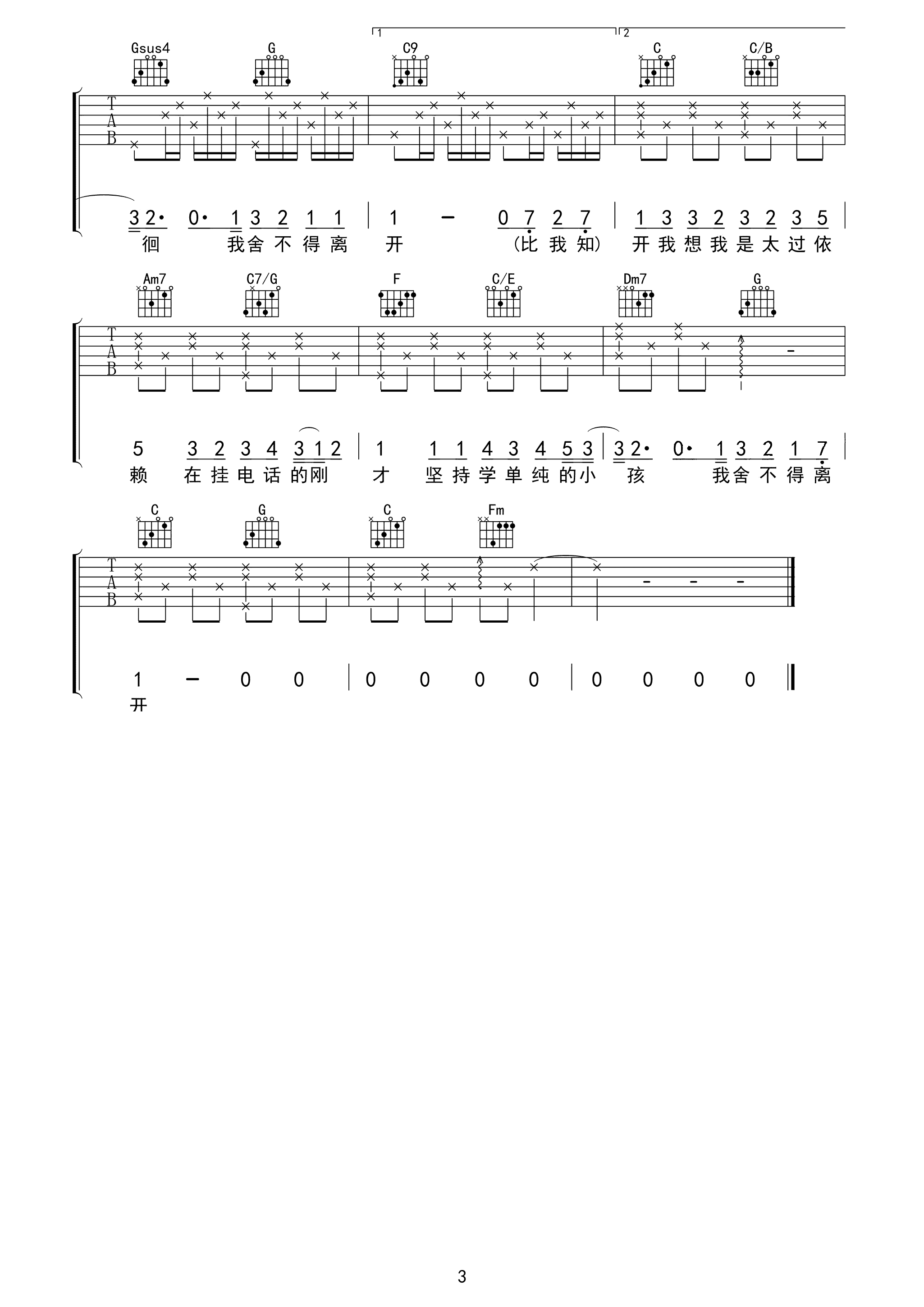 一千遍我爱你吉他谱