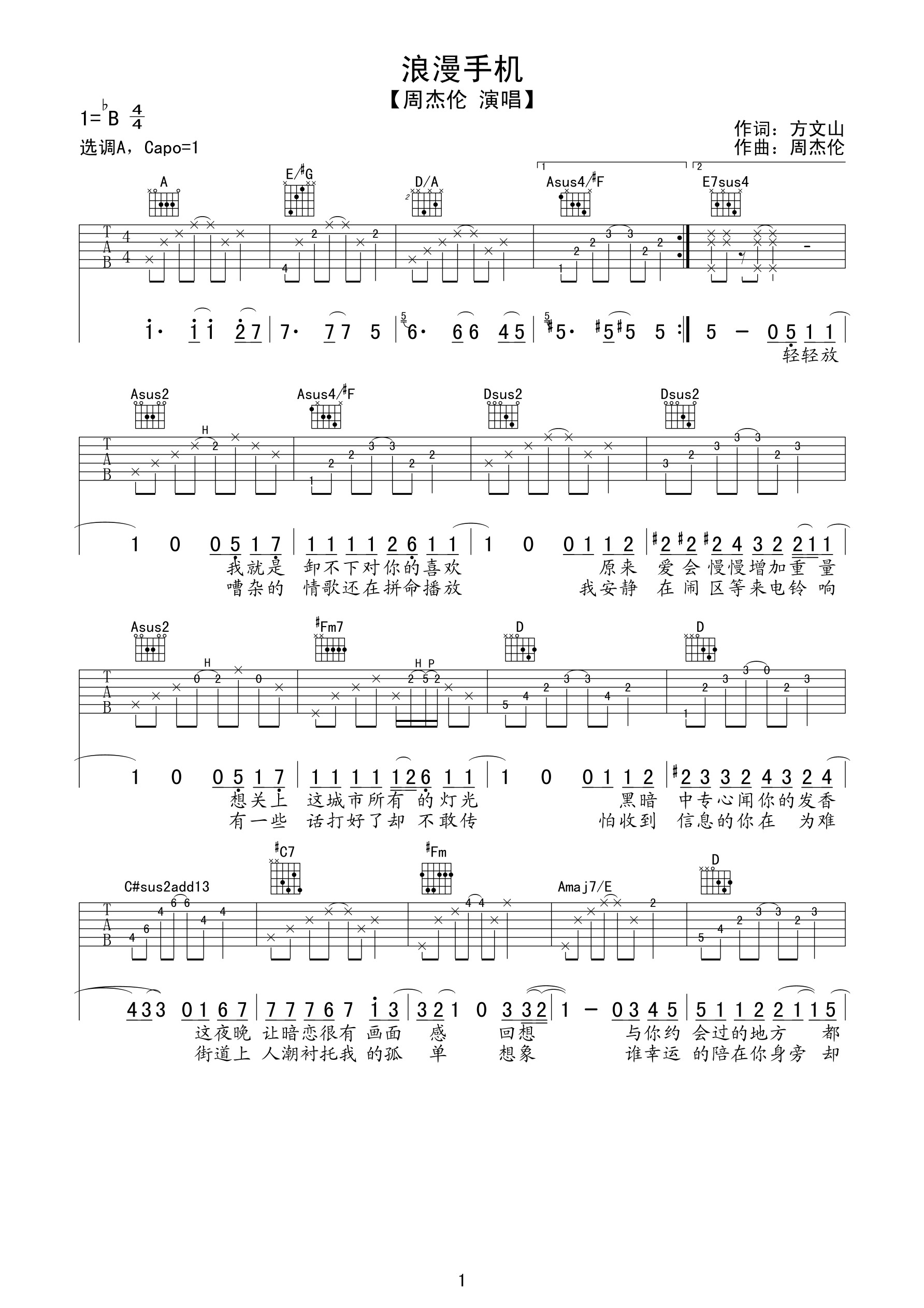 吉他谱 | 热门弹唱《浪漫手机》
