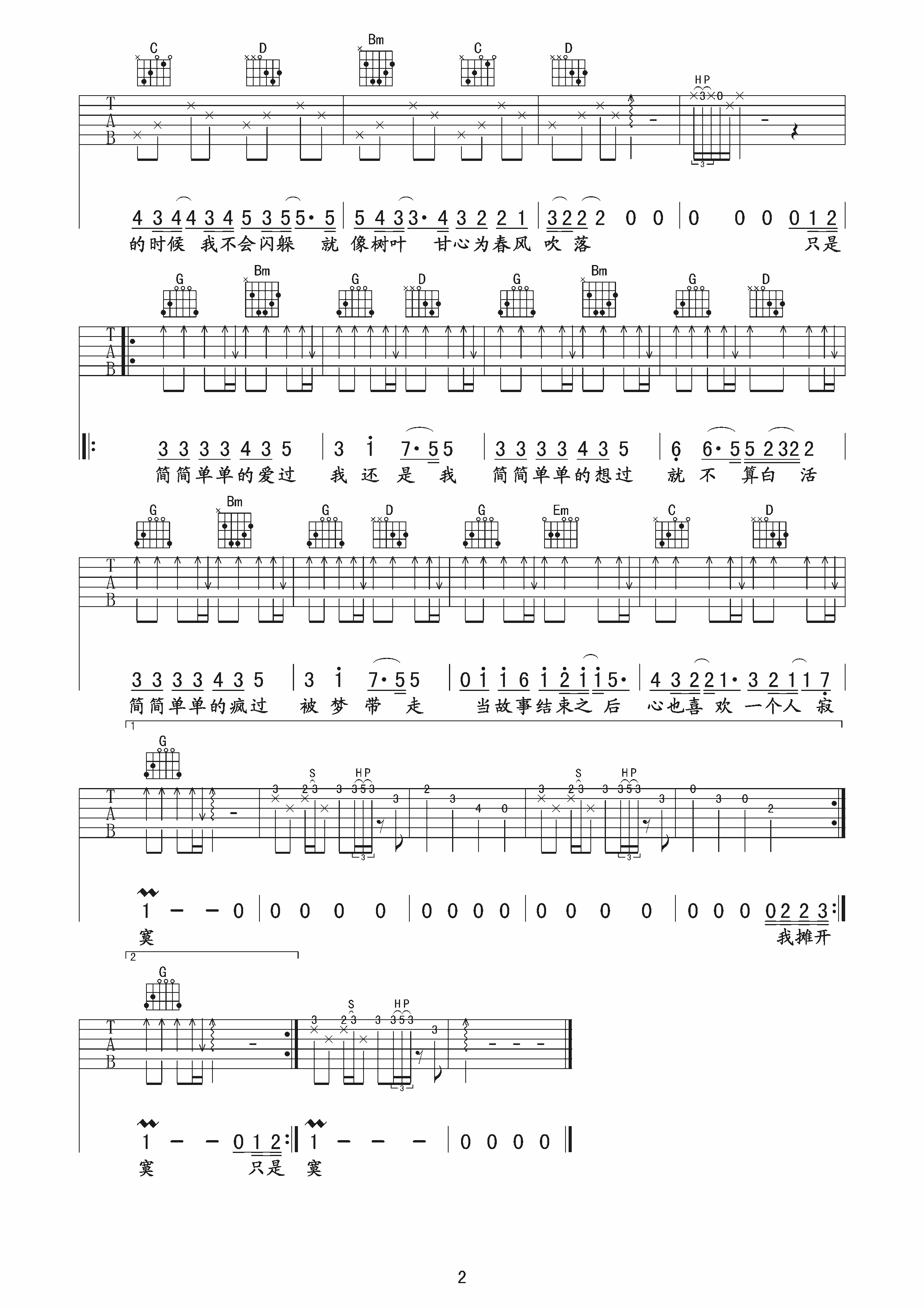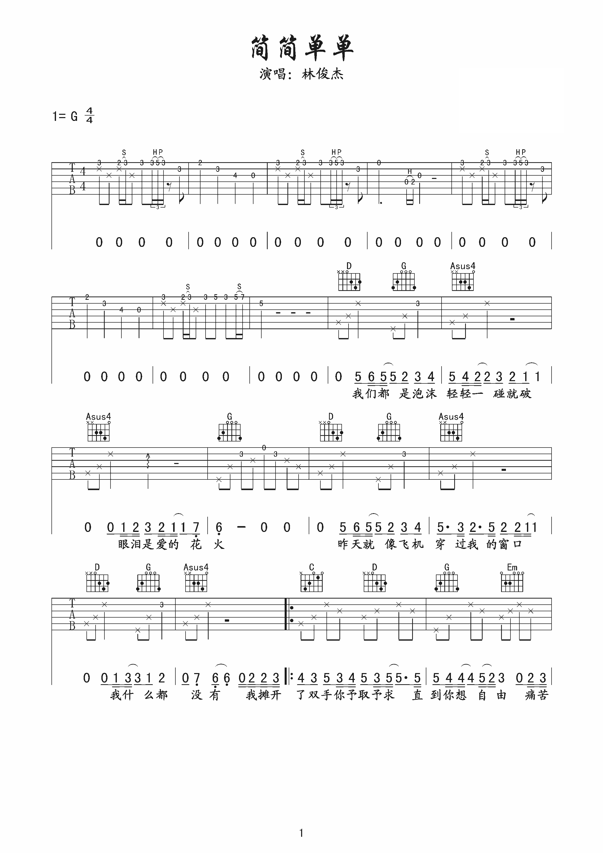 吉他谱 | 热门弹唱《简简单单》
