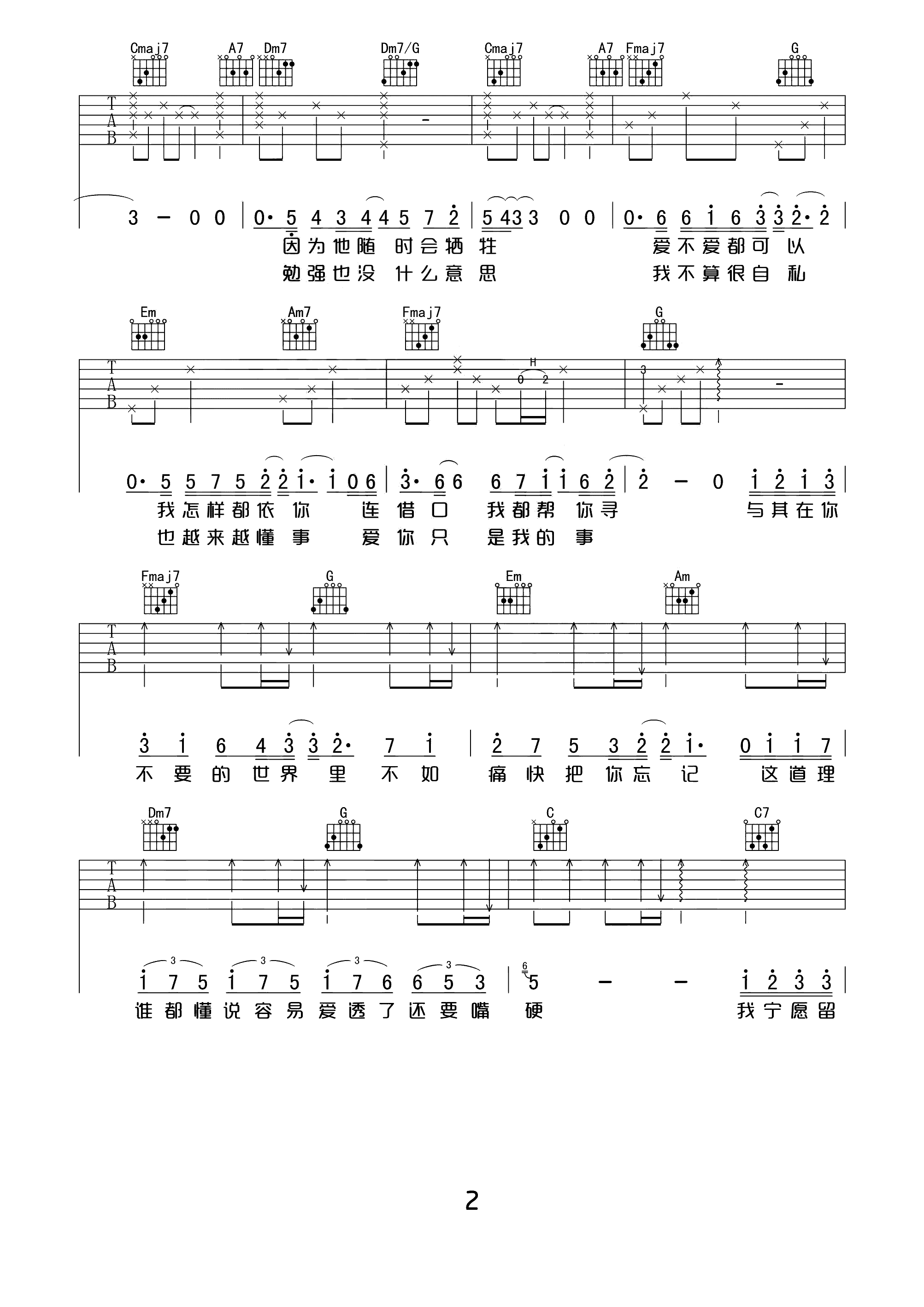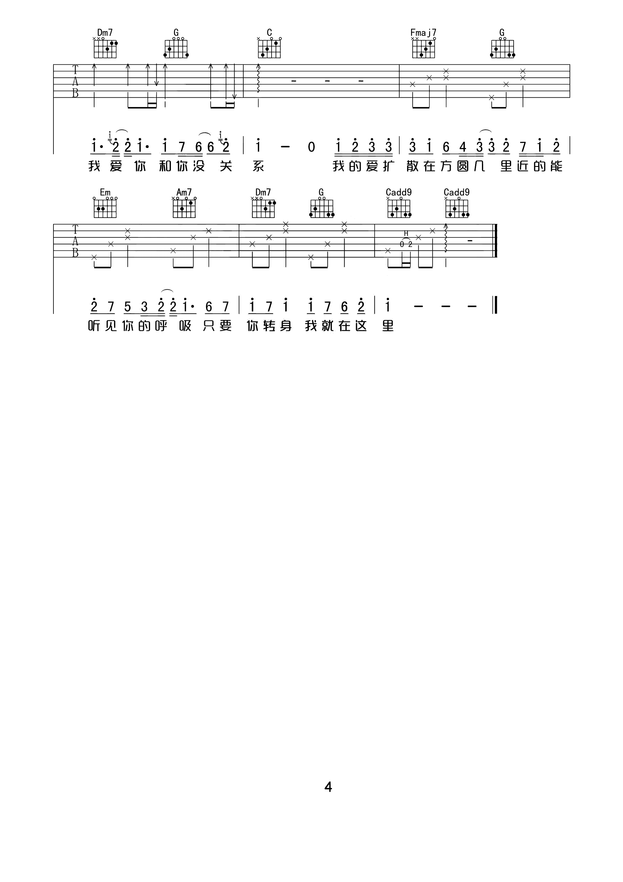 暖暖吉他谱 C调和弦谱 梁静茹 高清图片