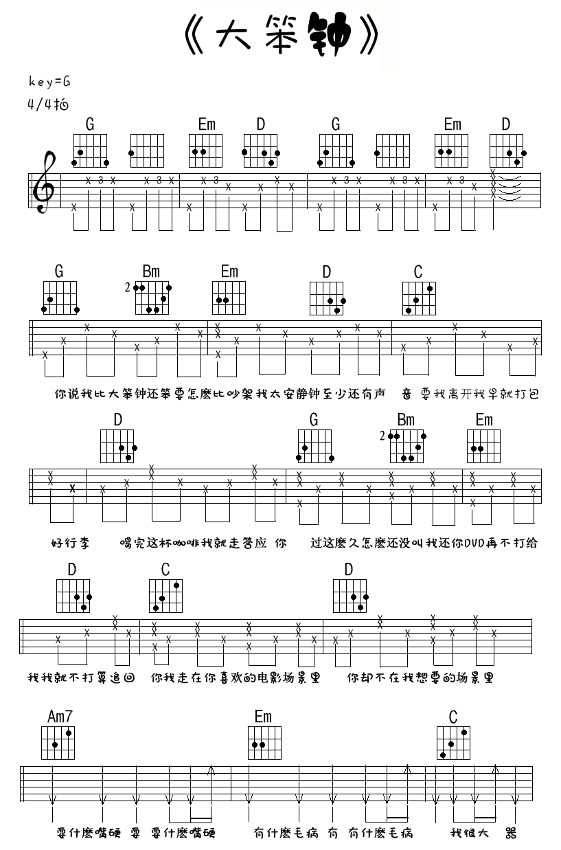吉他谱 | 热门弹唱《大笨钟》
