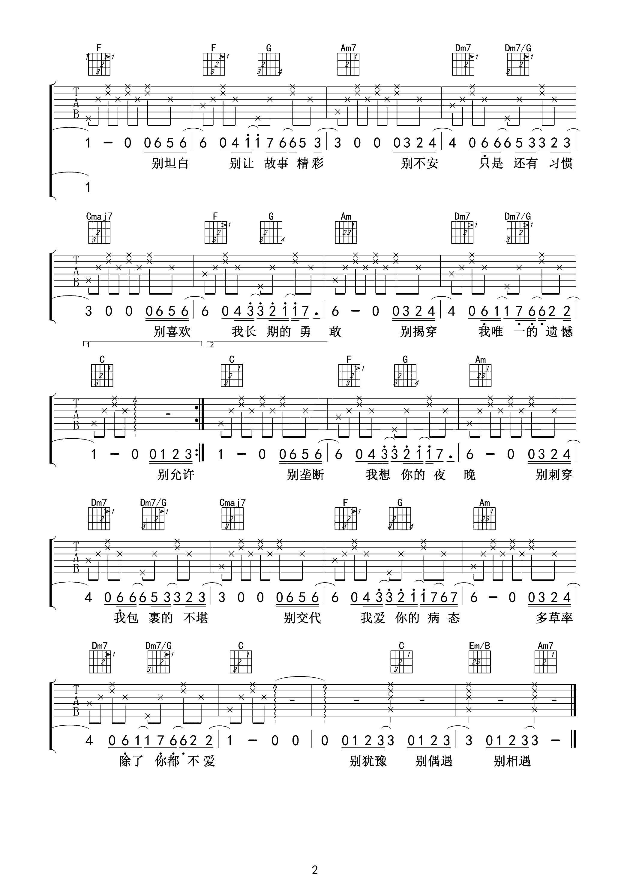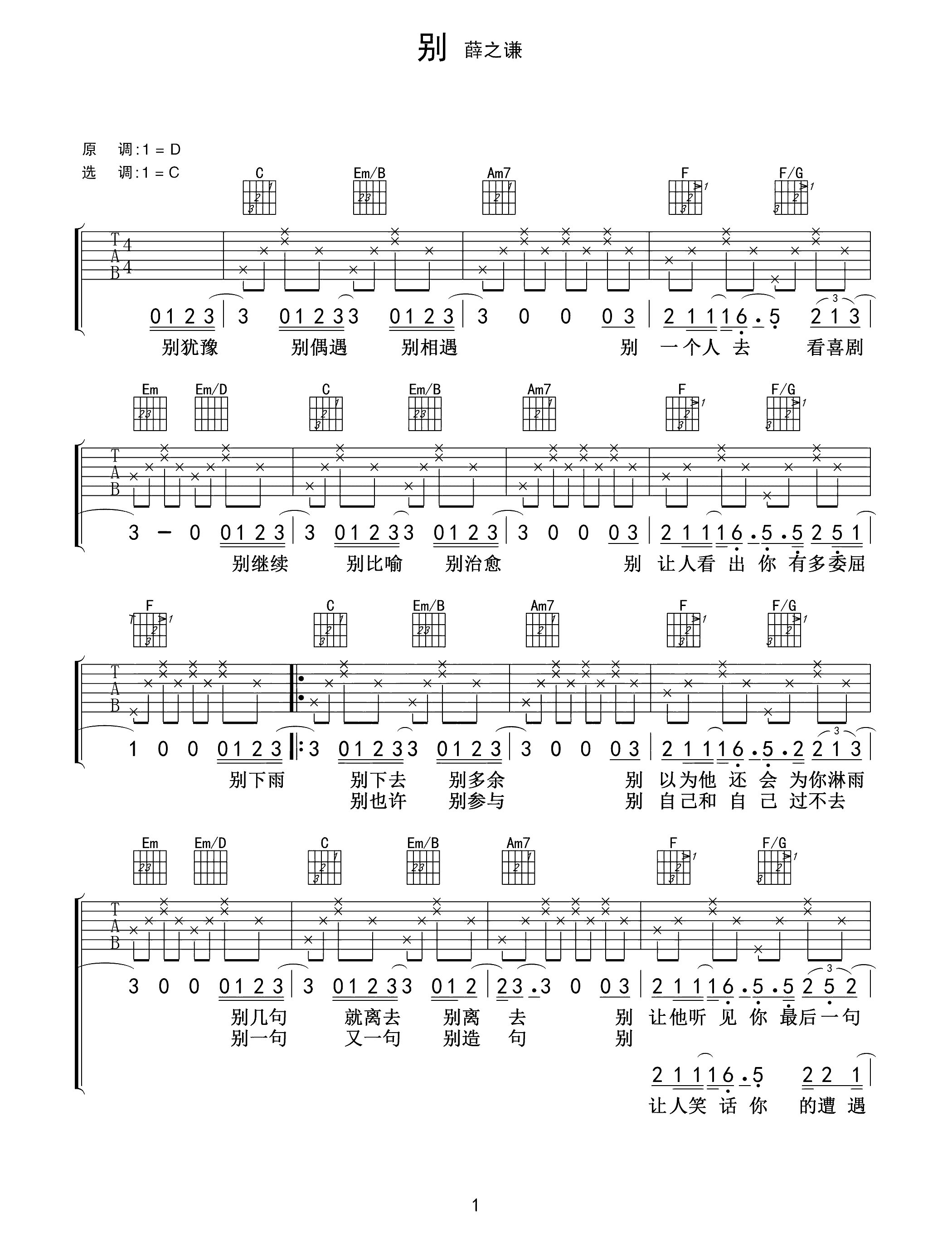 把爱散落在人间吉他谱_隔壁老樊_C调弹