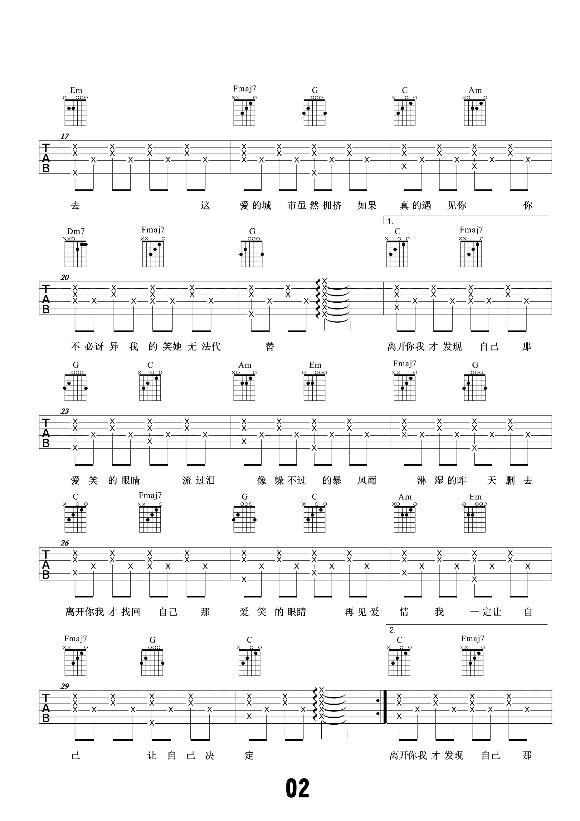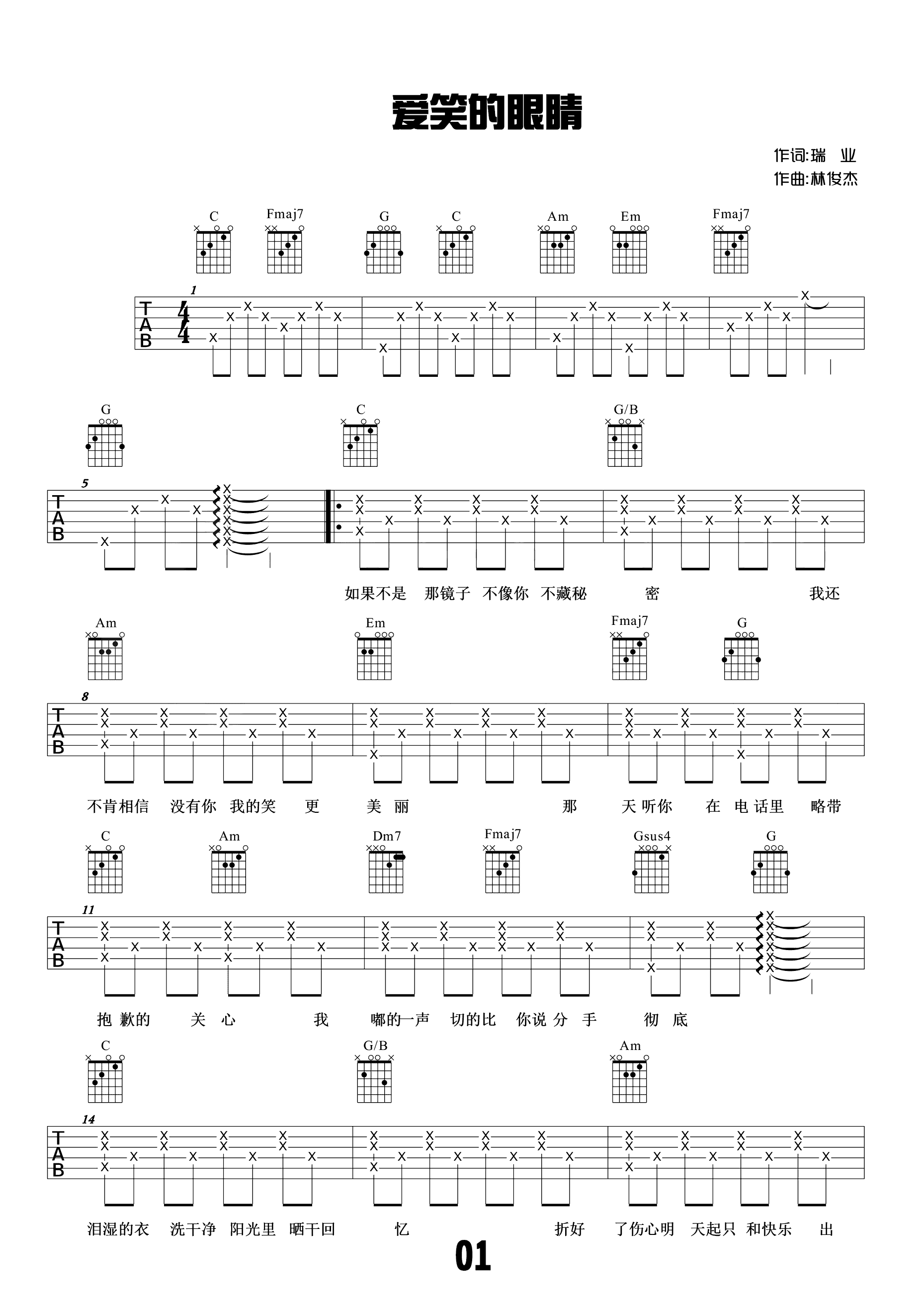 吉他谱 | 热门弹唱《爱笑的眼睛》