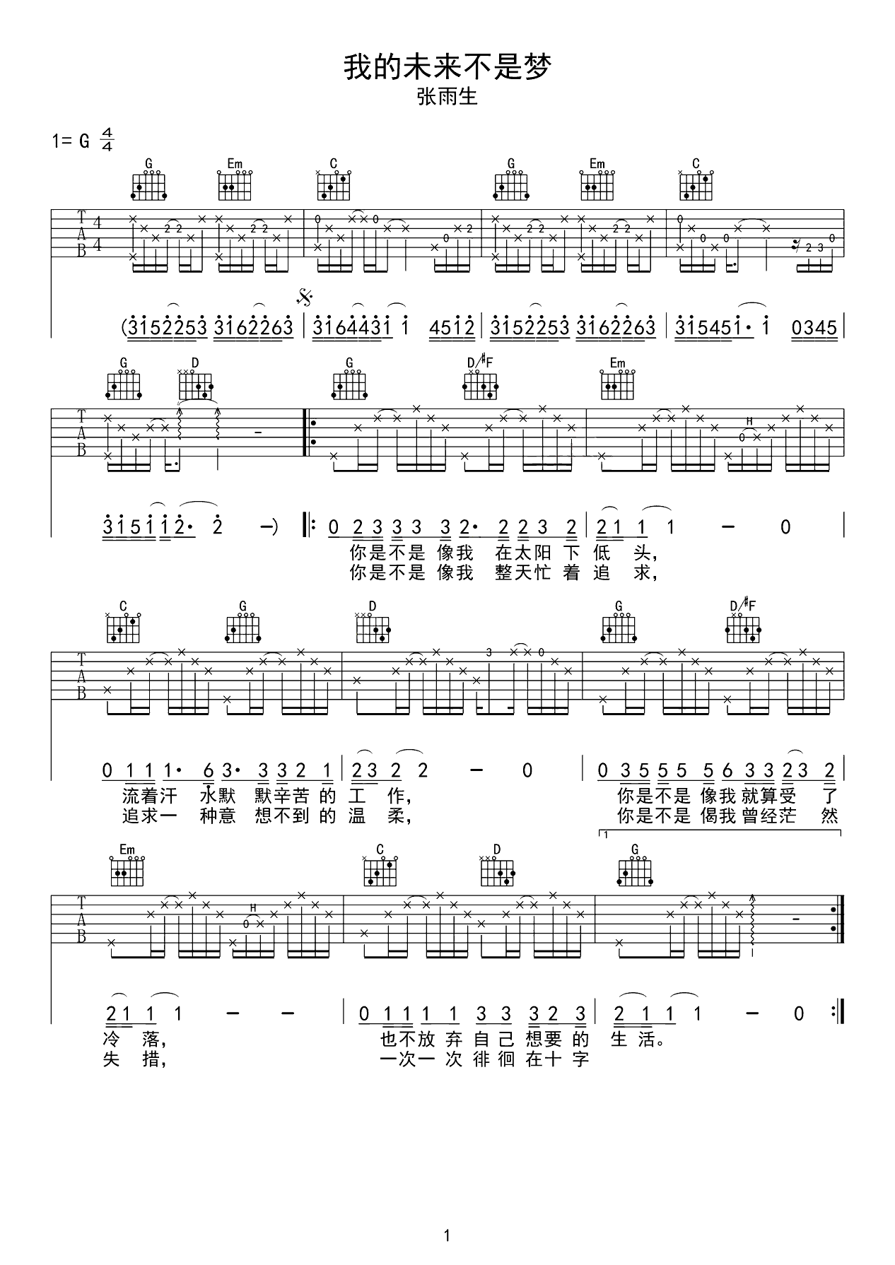 吉他谱 | 热门弹唱《我的未来不是梦》