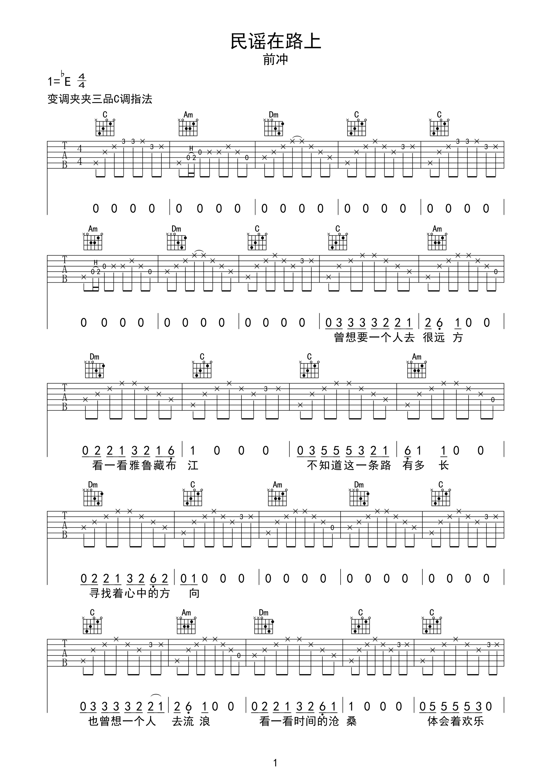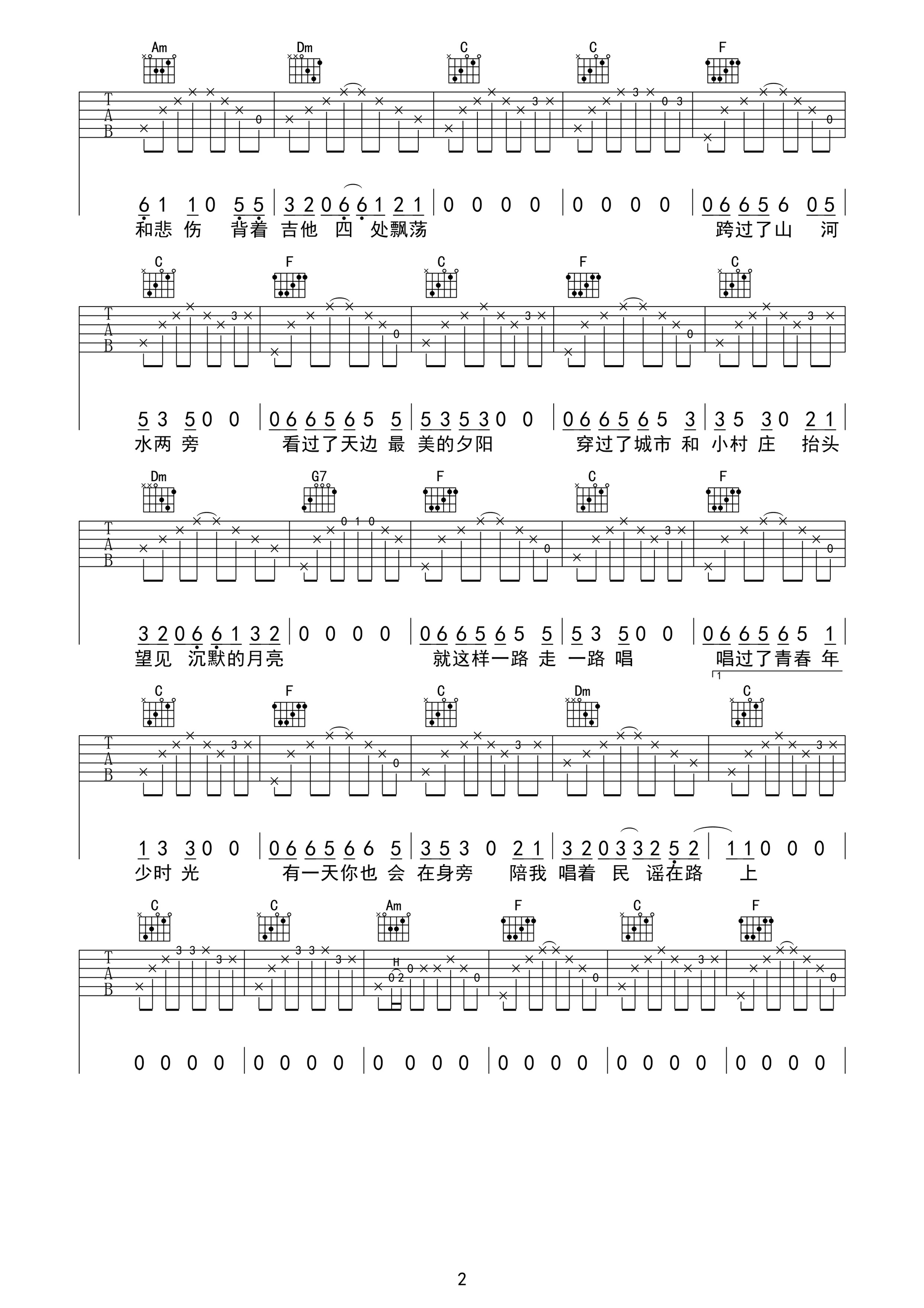 吉他谱 | 热门弹唱《民谣在路上》