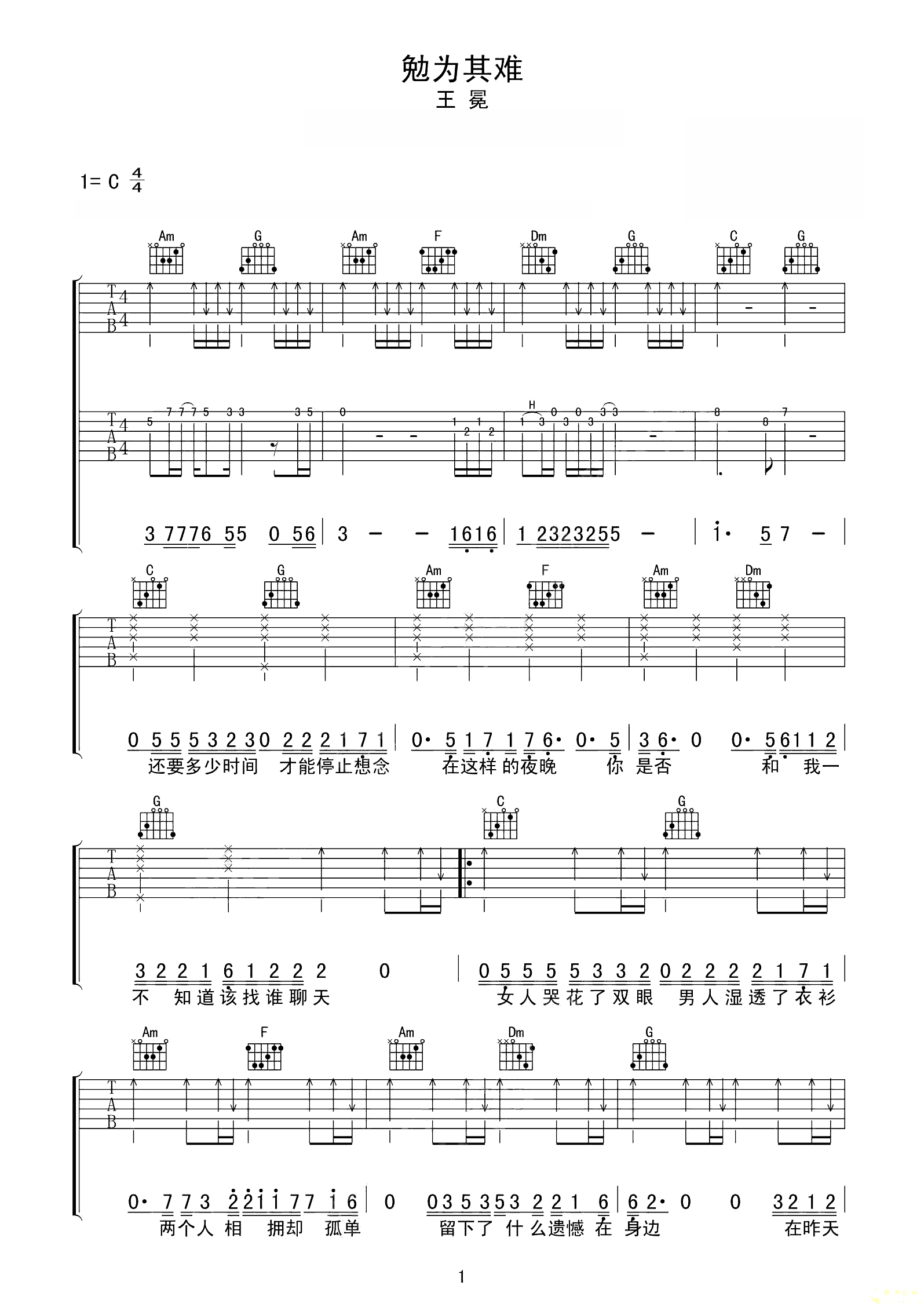 吉他谱 | 热门弹唱《勉为其难》