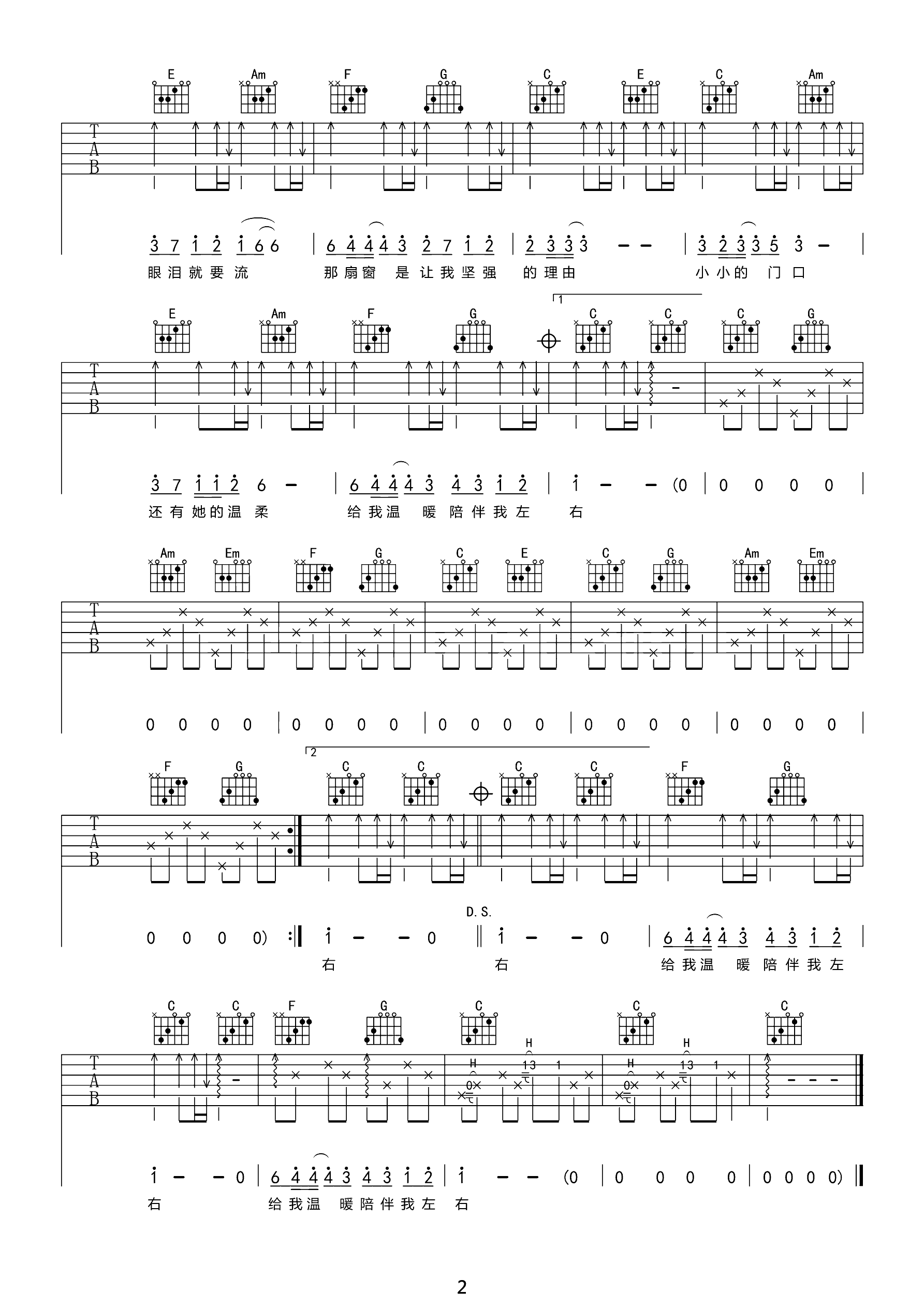 广东爱情故事吉他谱 广东雨神 D调 弹唱