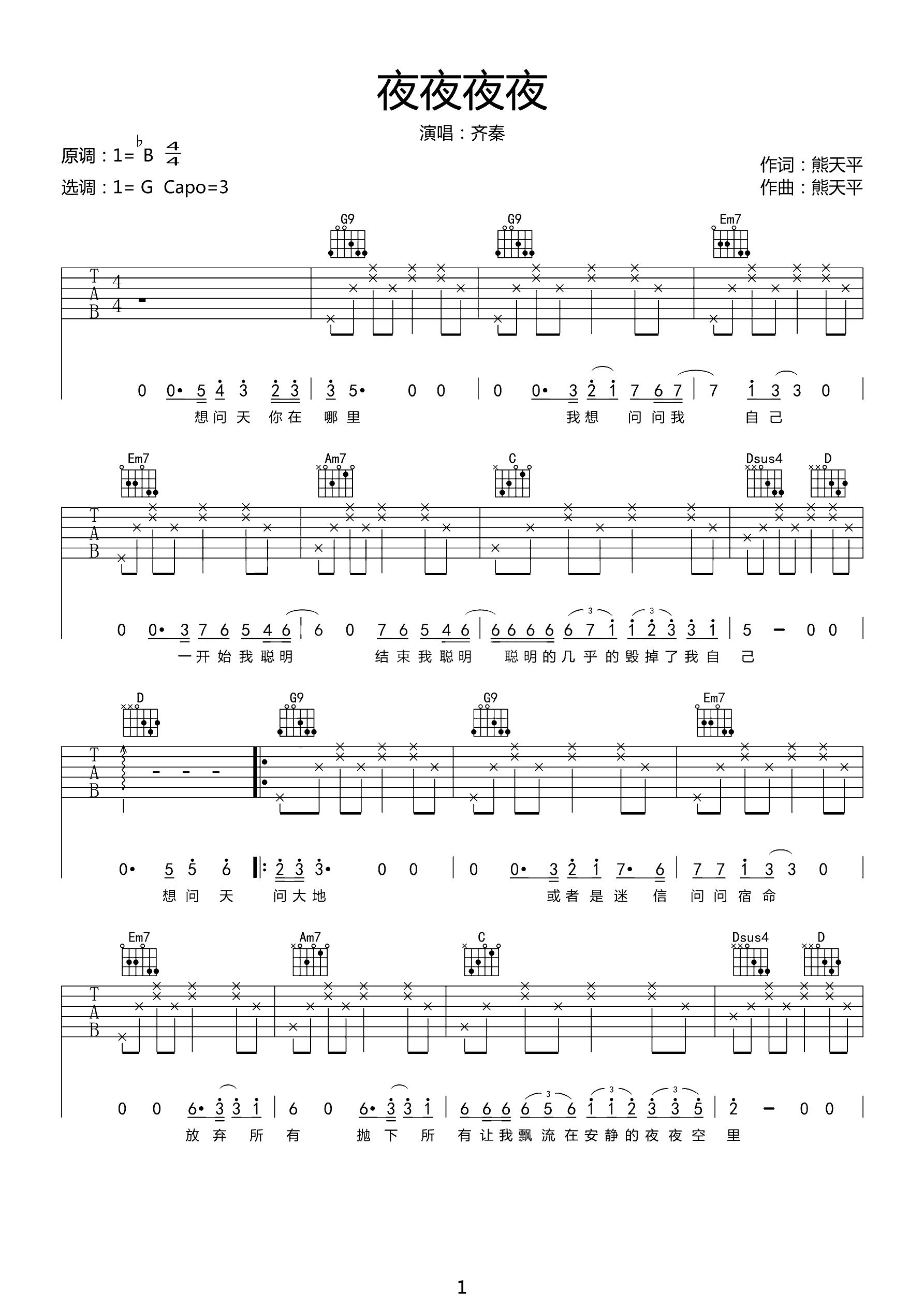 吉他谱 | 热门弹唱《夜夜夜夜》
