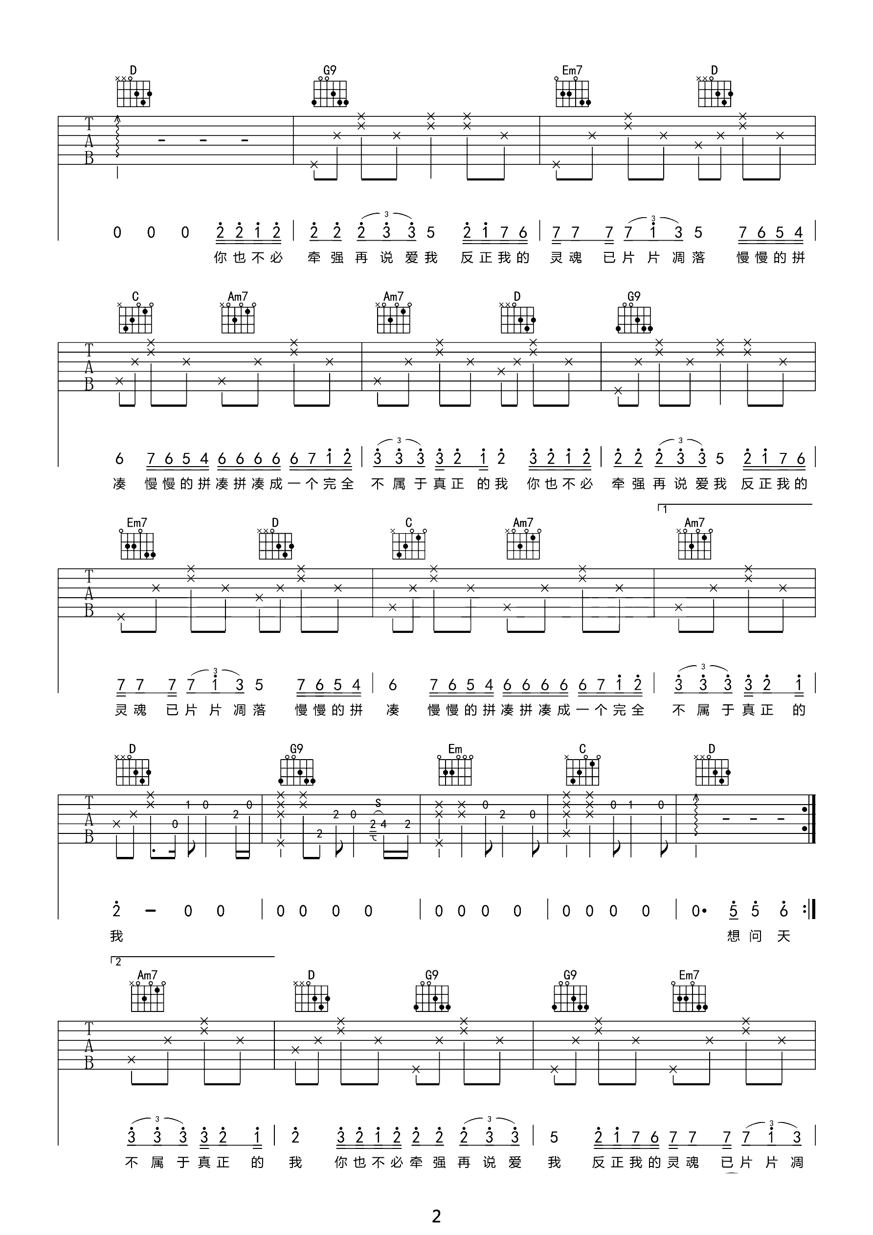 面具吉他谱 许廷铿 天后粤语版 弹唱六