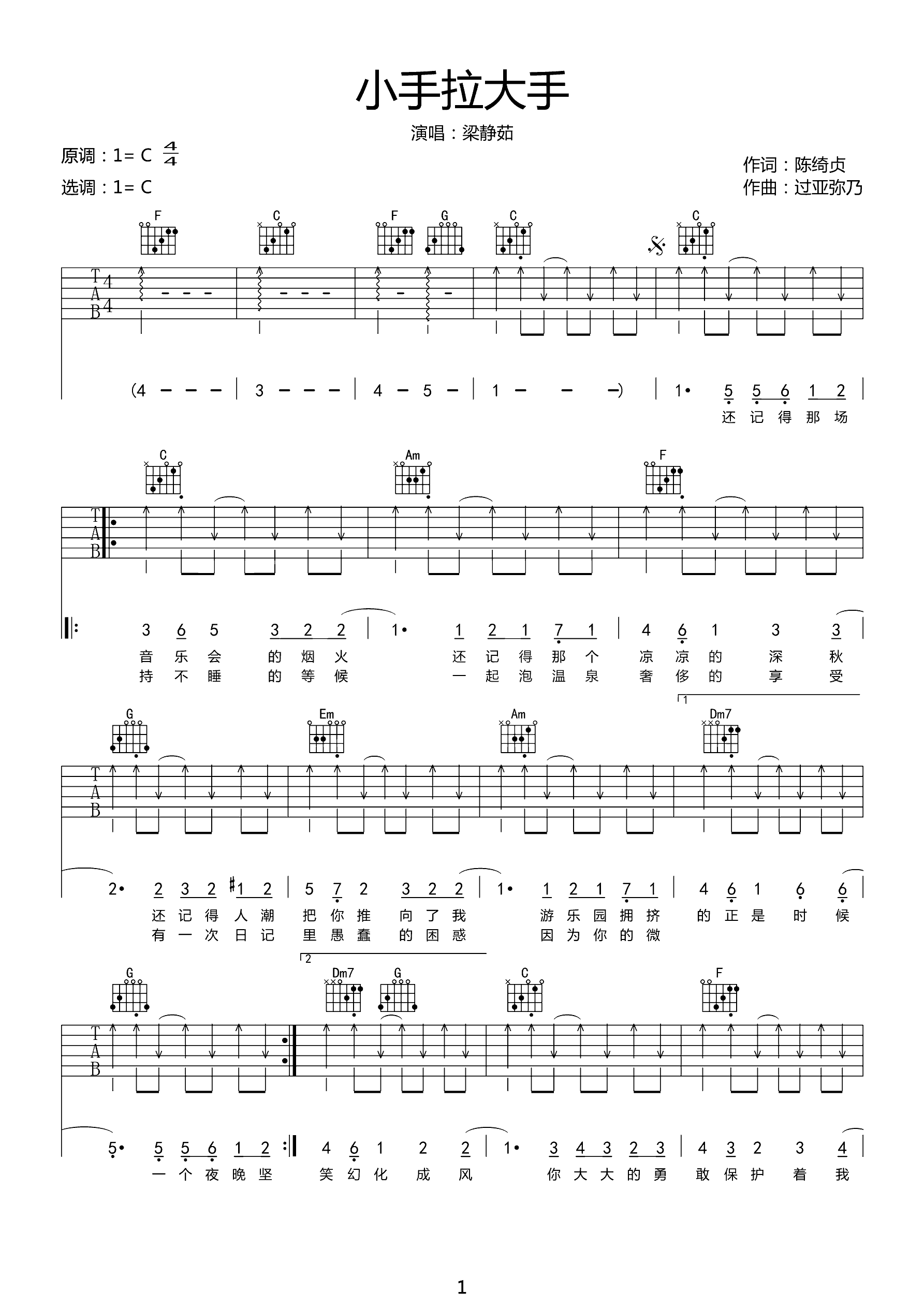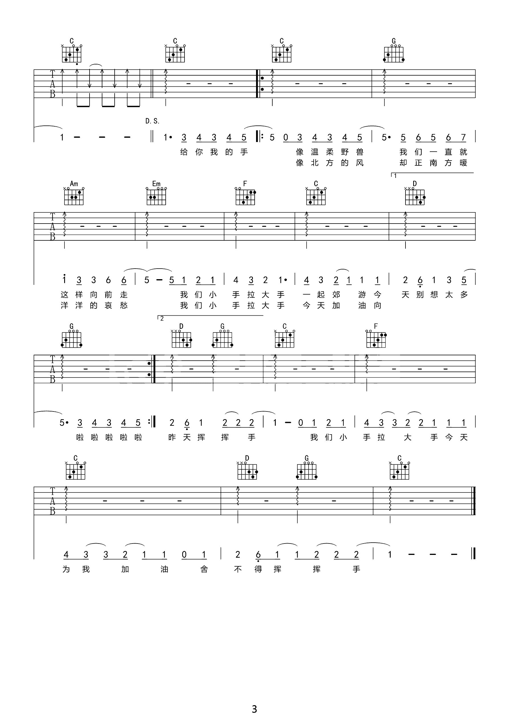 吉他谱 | 热门弹唱《小手拉大手》