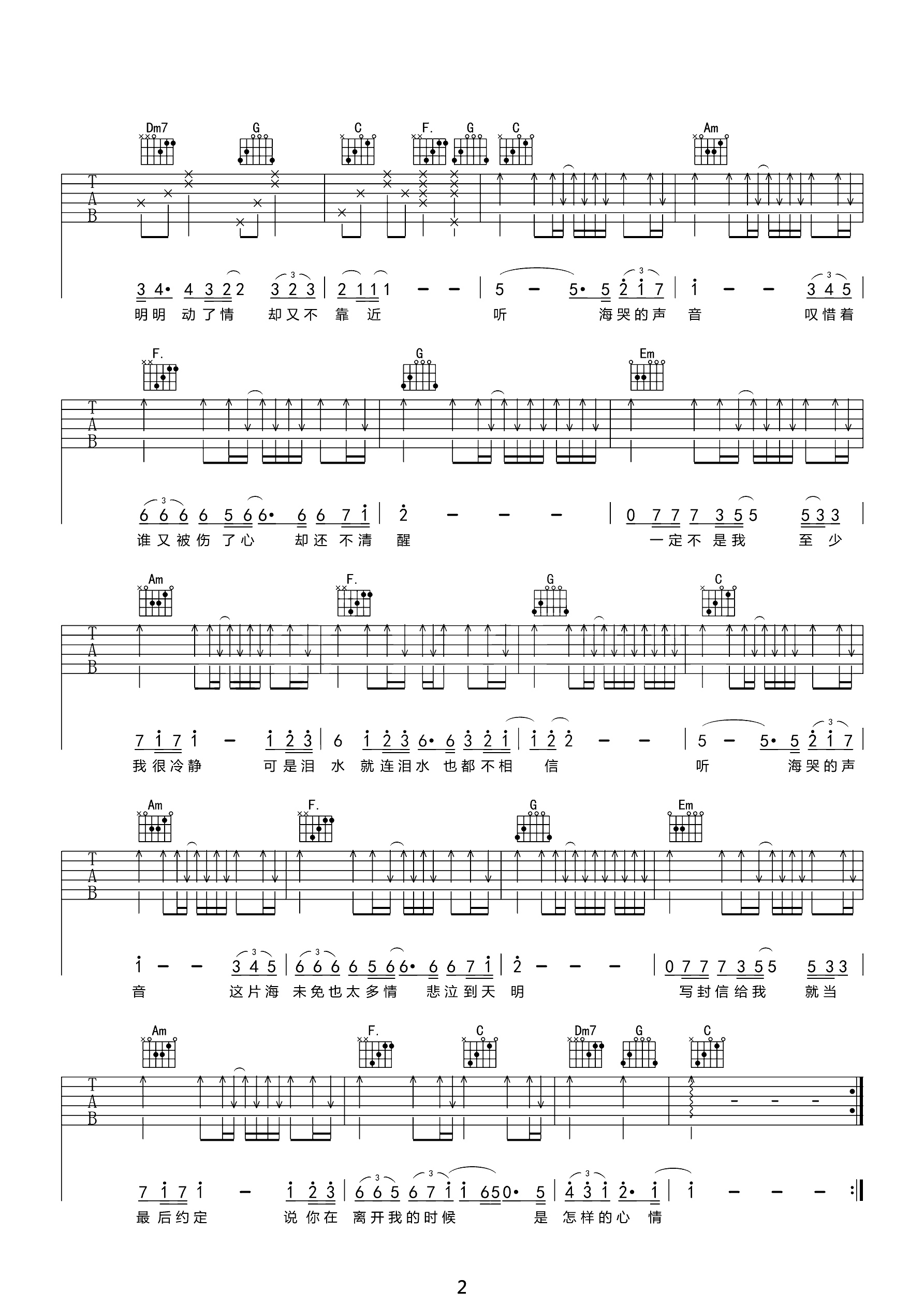 不分手的恋爱吉他谱_汪苏泷_C调入门版_