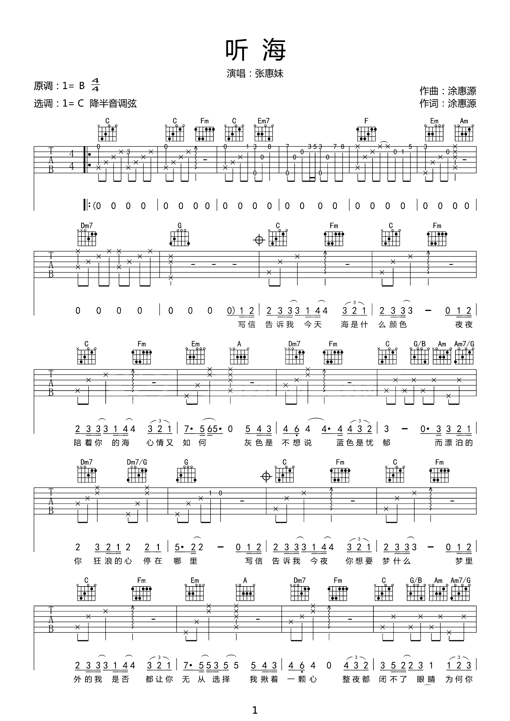 陈硕子《凌晨三点》吉他谱 C调入门版