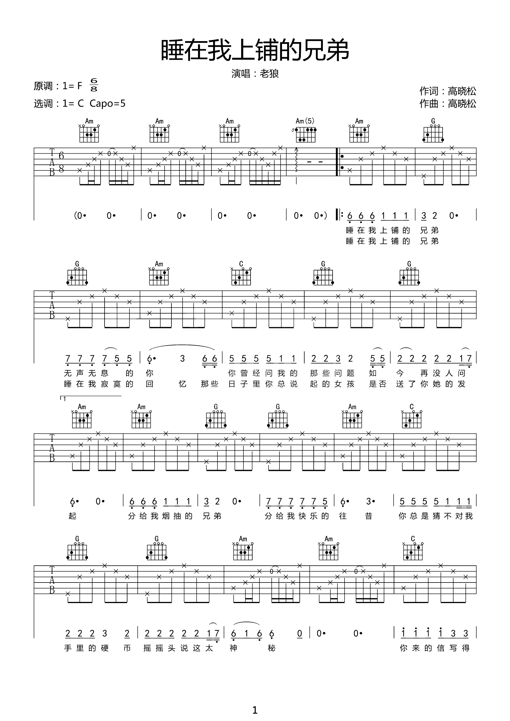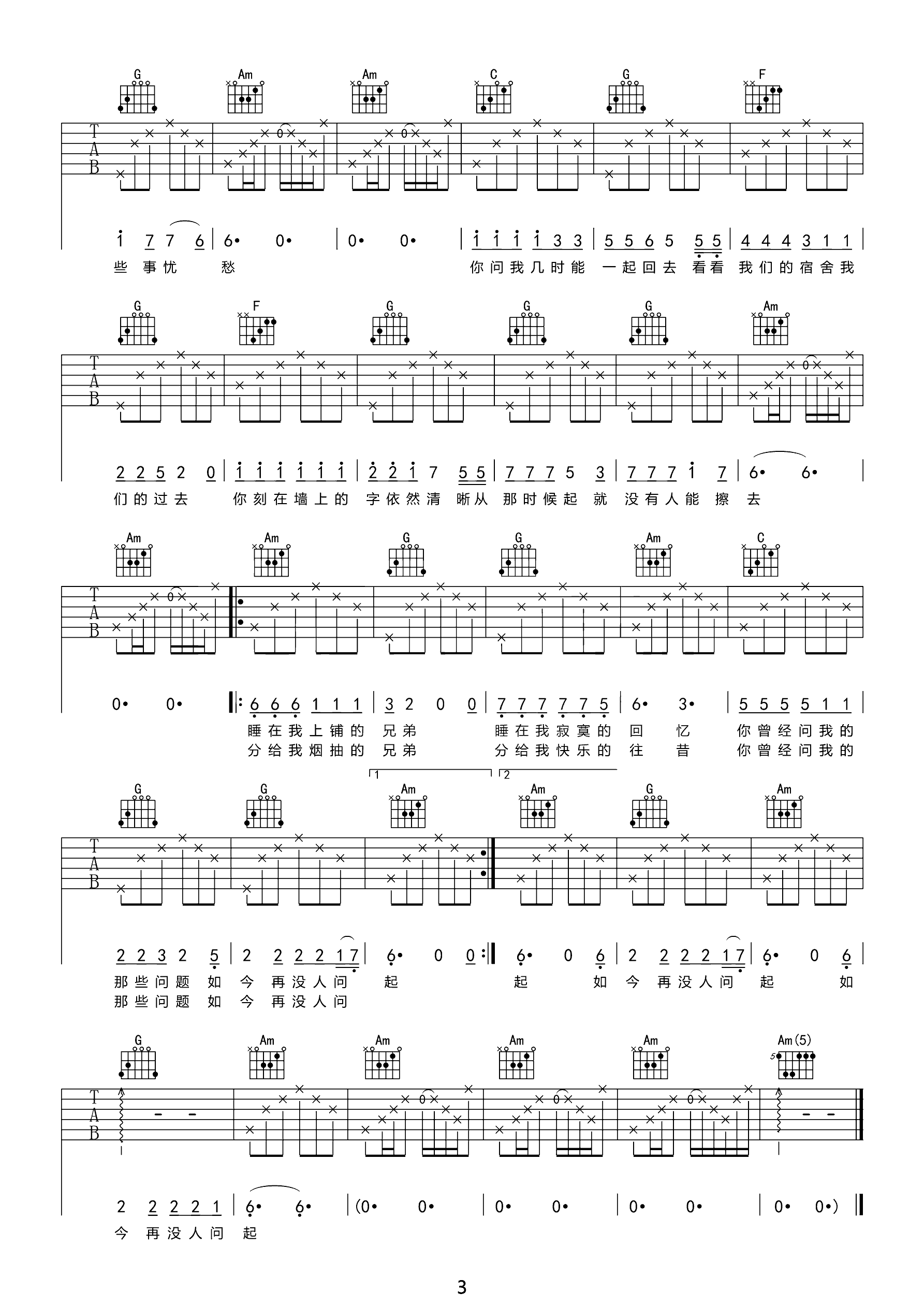 吉他谱 | 热门弹唱《睡在我上铺的兄弟》
