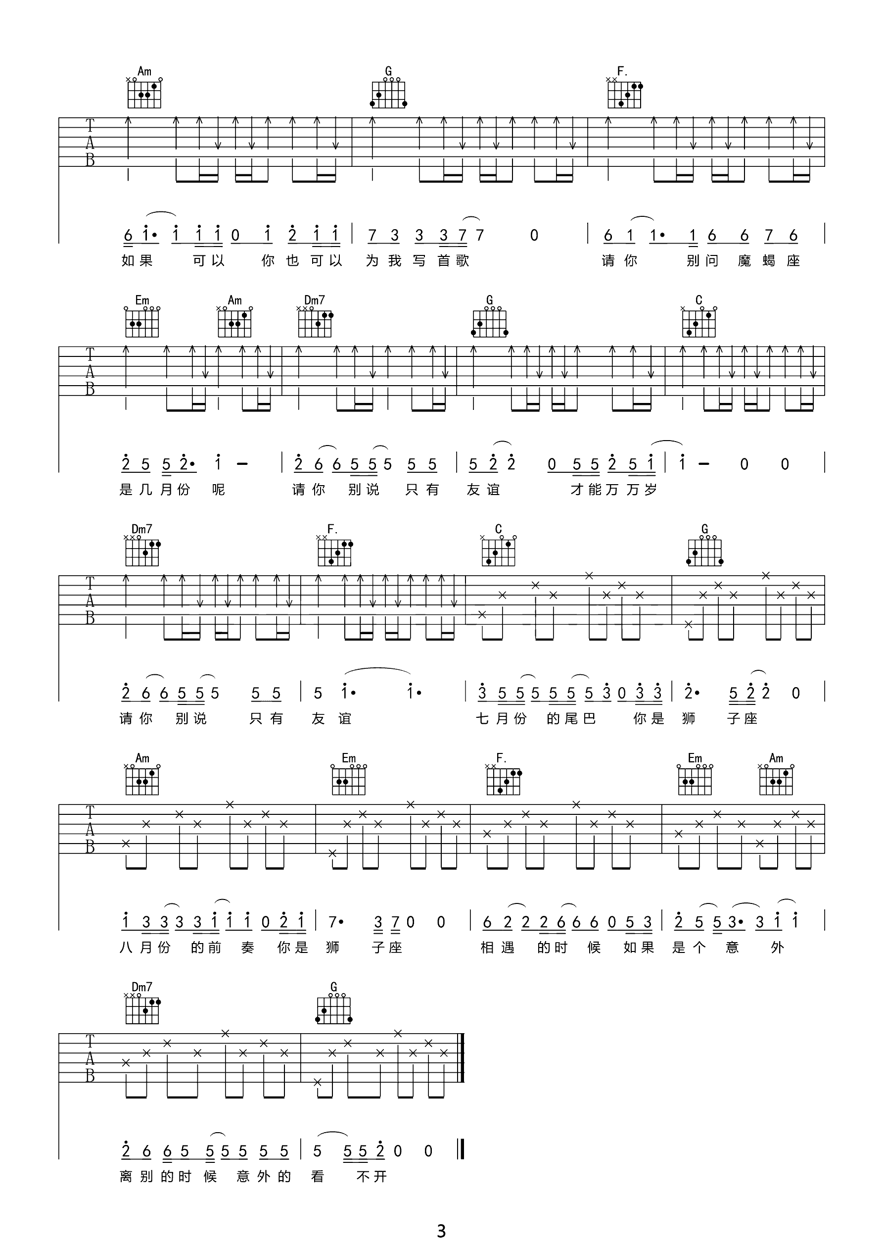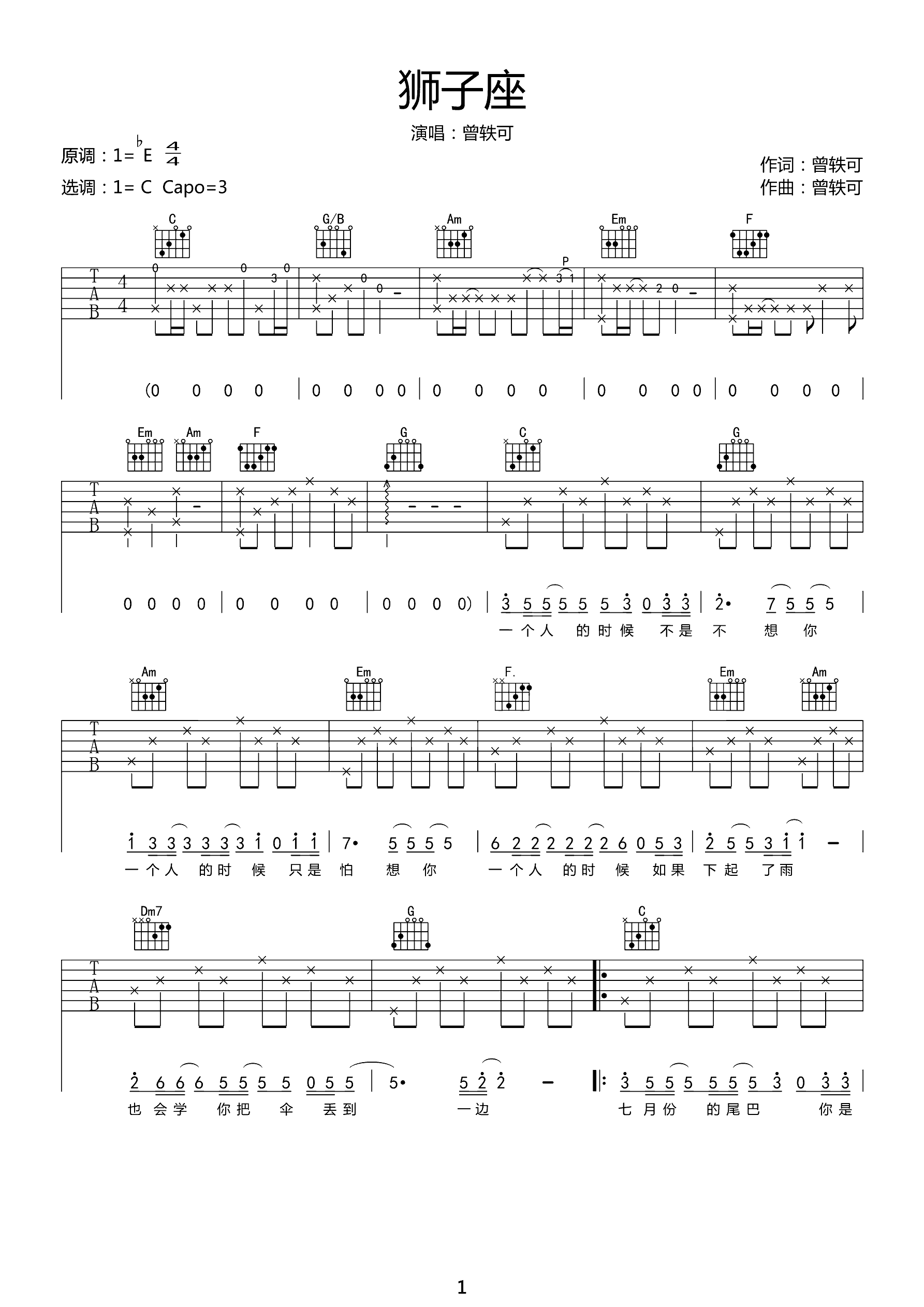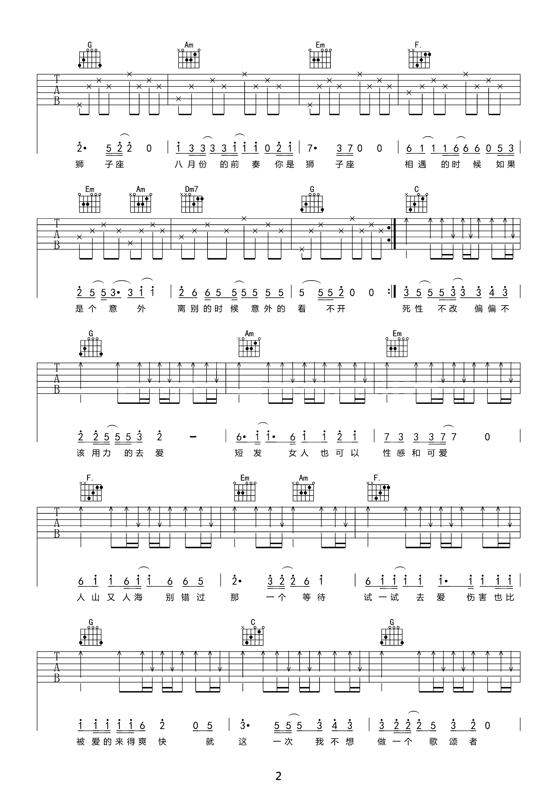 吉他谱 | 热门弹唱《狮子座》