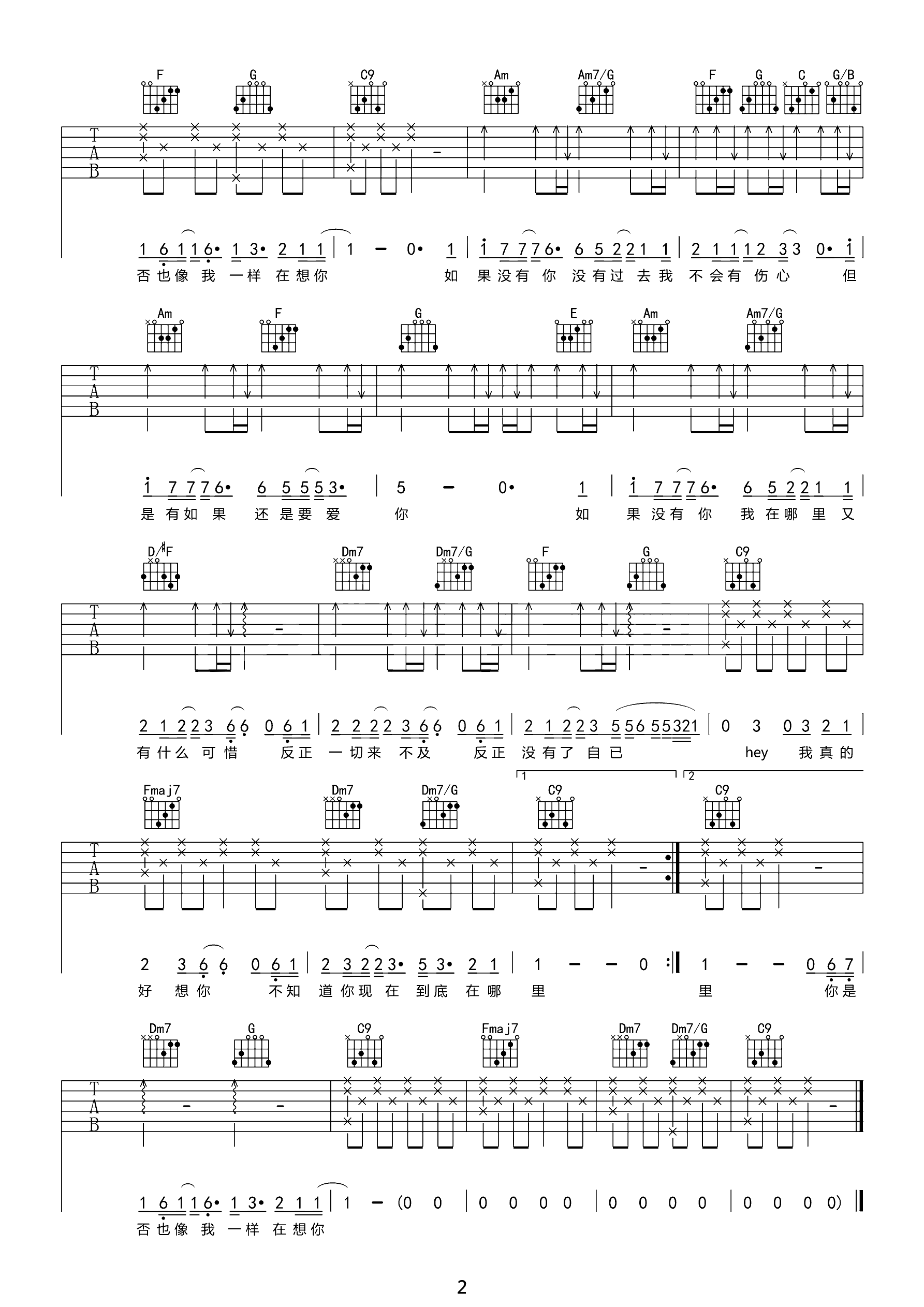 回忆总想哭吉他谱 南宫嘉骏&姜