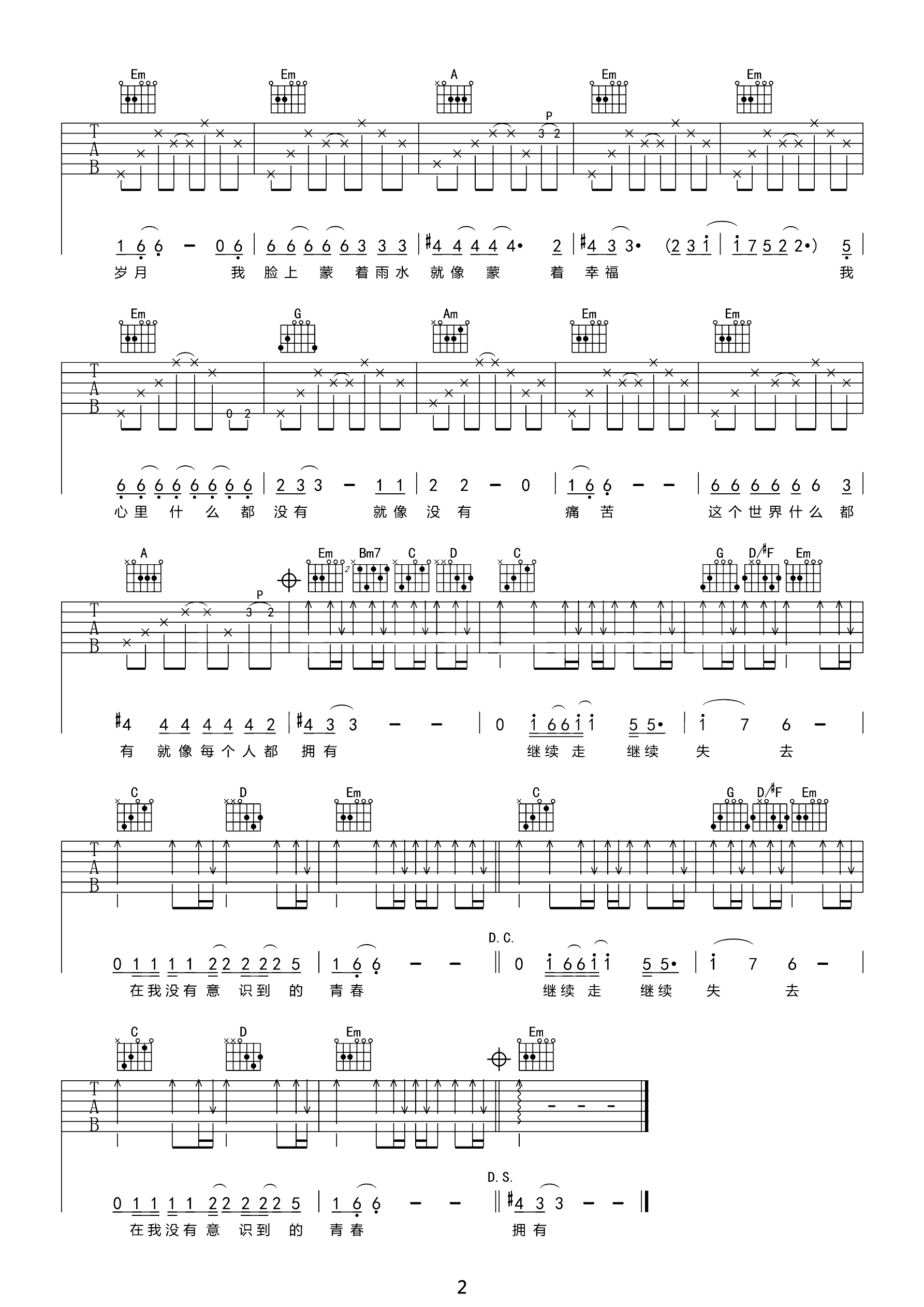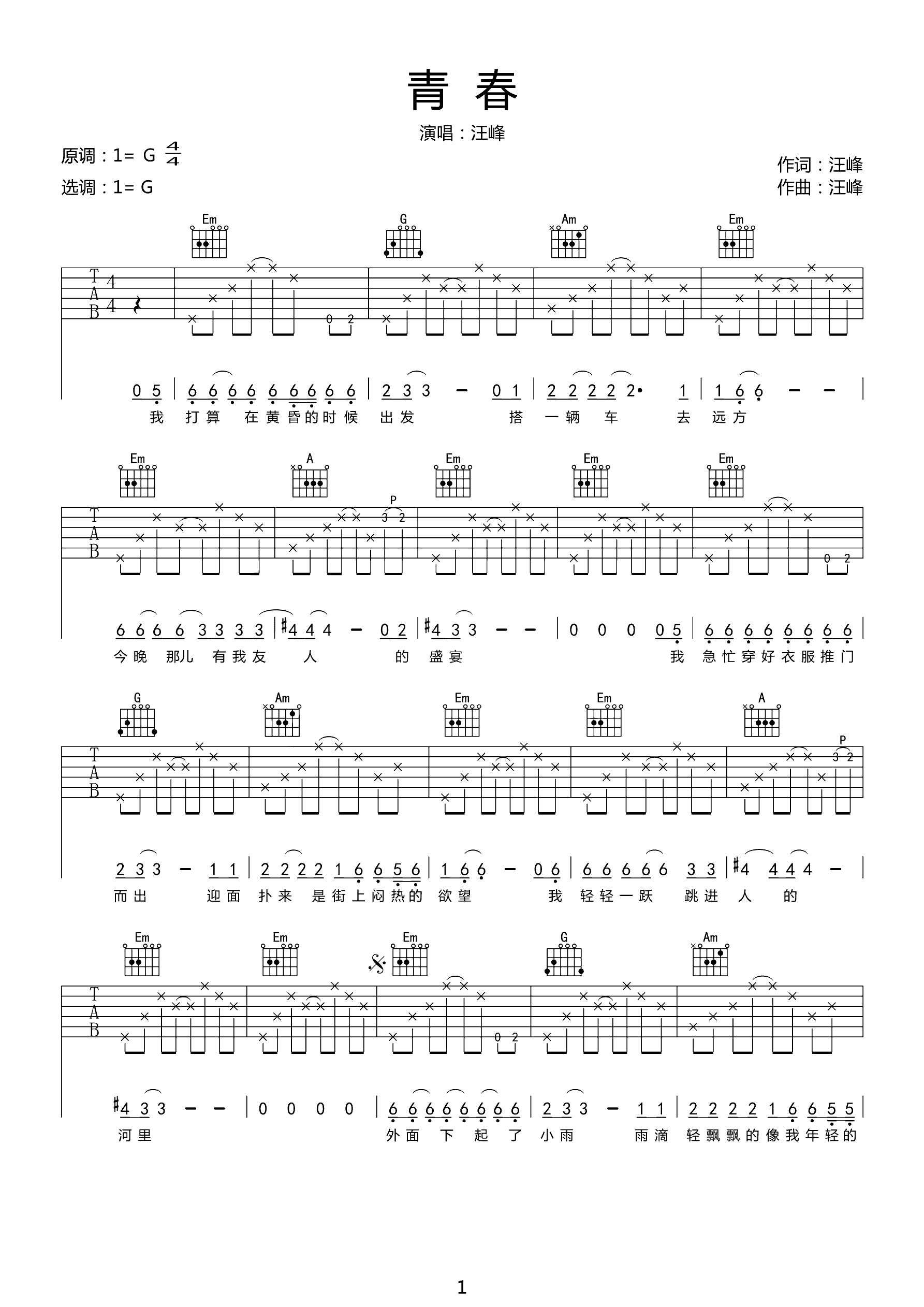 吉他谱 | 热门弹唱《青春》