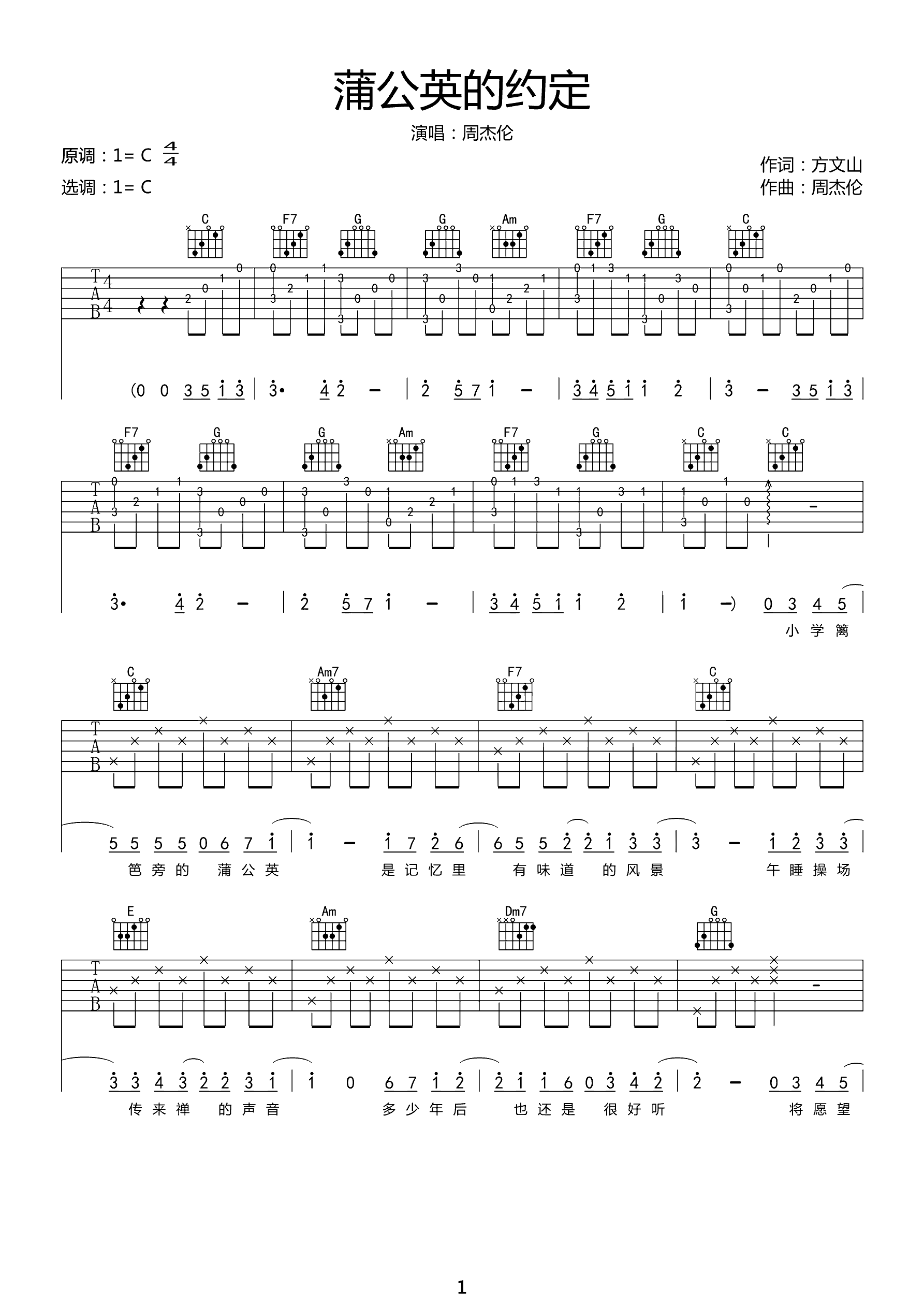 吉他谱 | 热门弹唱《蒲公英的约定》