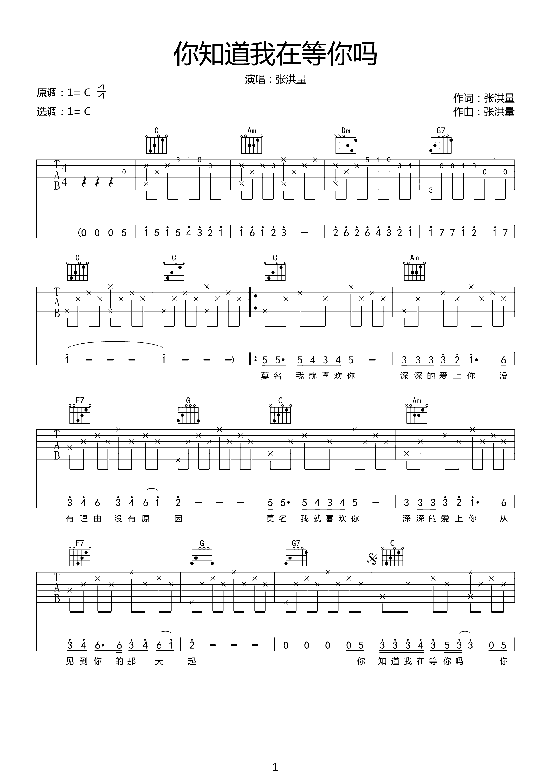 吉他谱 | 热门弹唱《你知道我在等你吗》
