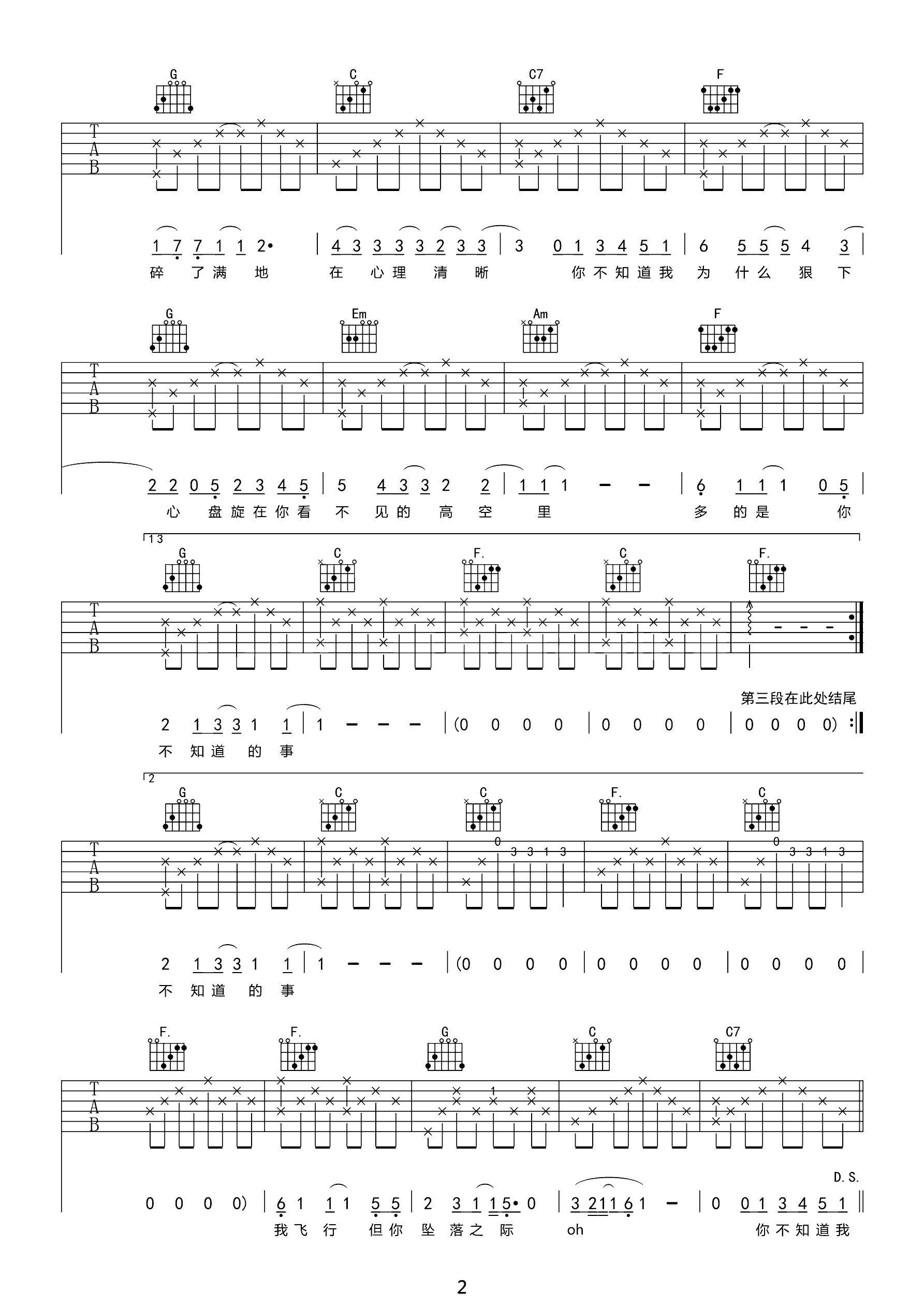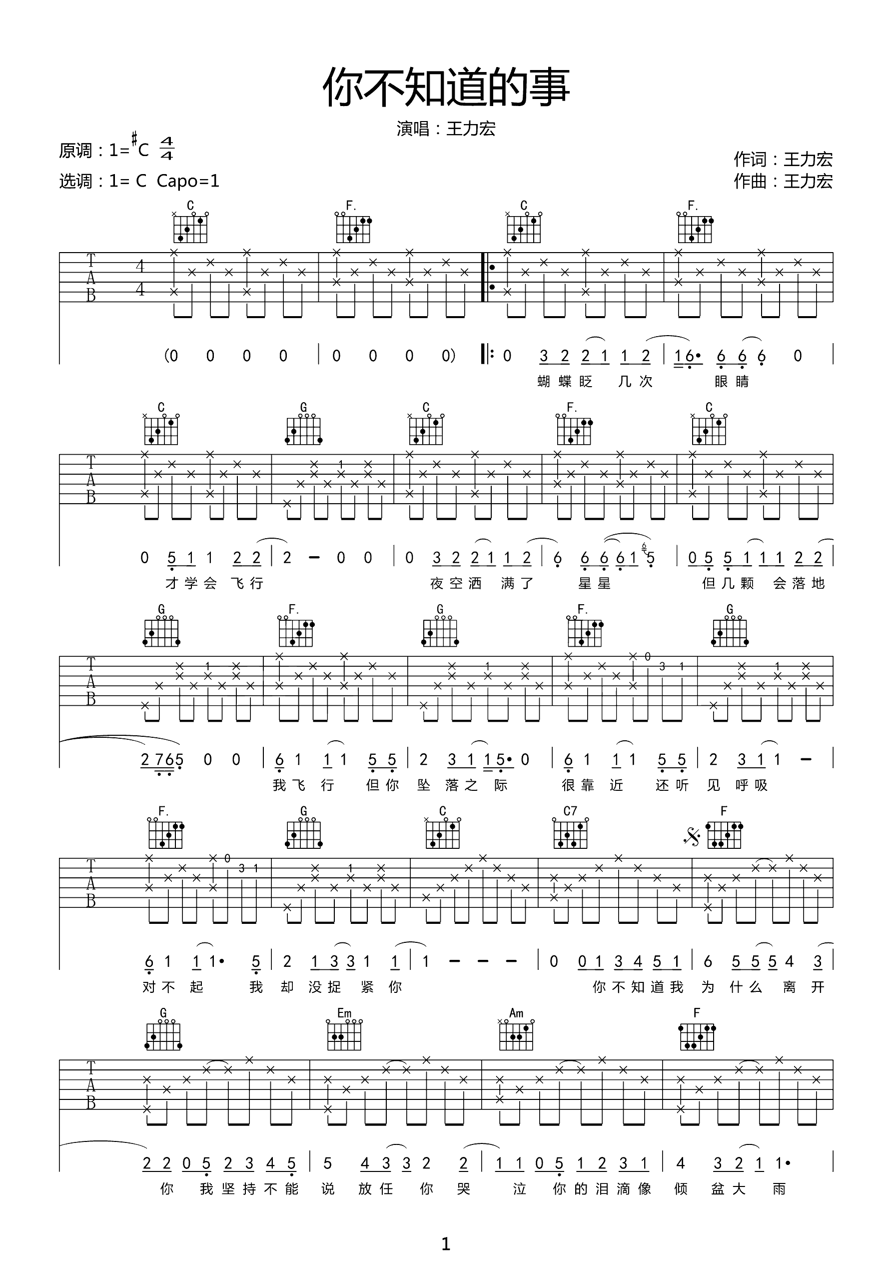 吉他谱 | 热门弹唱《你不知道的事》