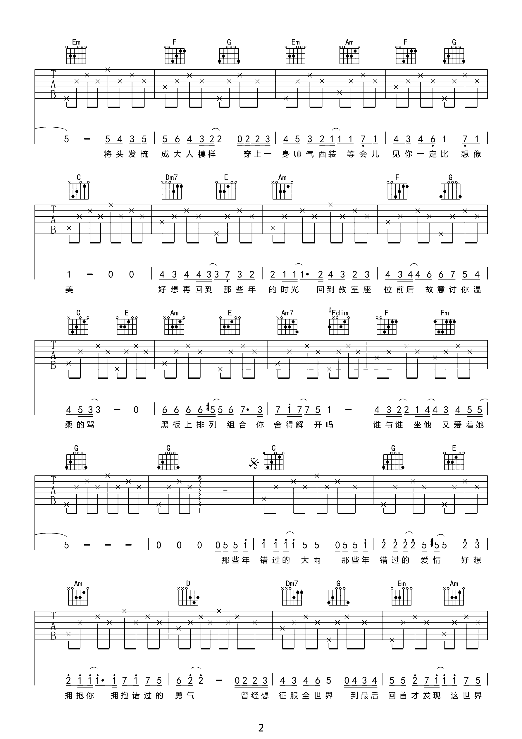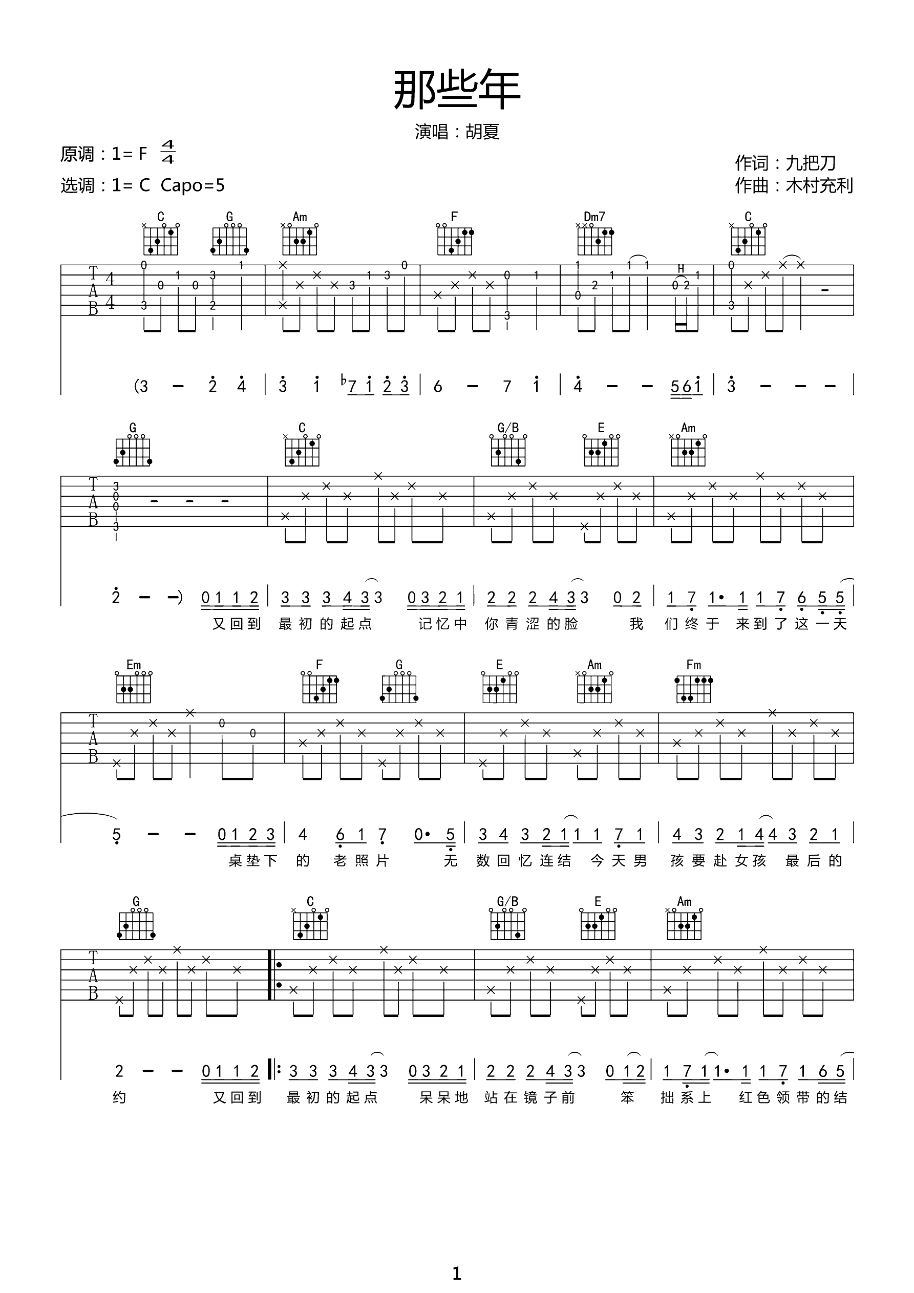 吉他谱 | 热门弹唱《那些年》