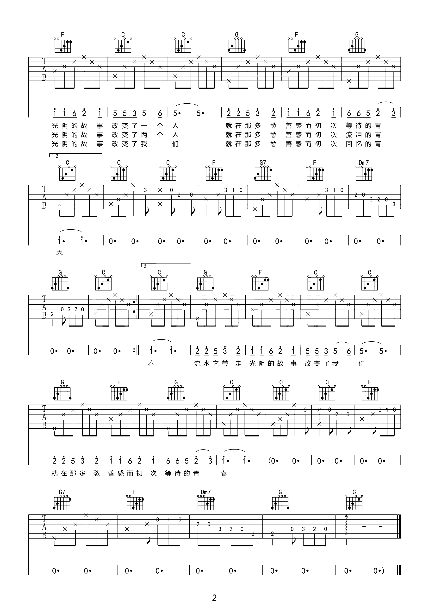 山楂树之恋吉他谱_程佳佳_G调_六线谱完