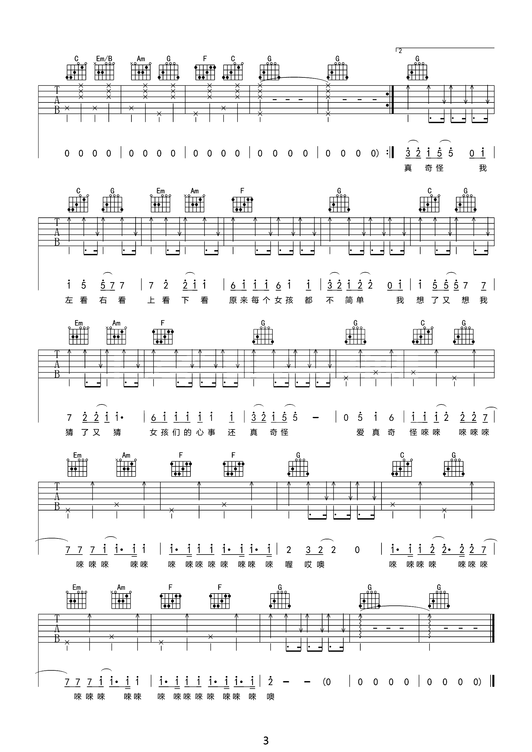号码 周笔畅吉他谱