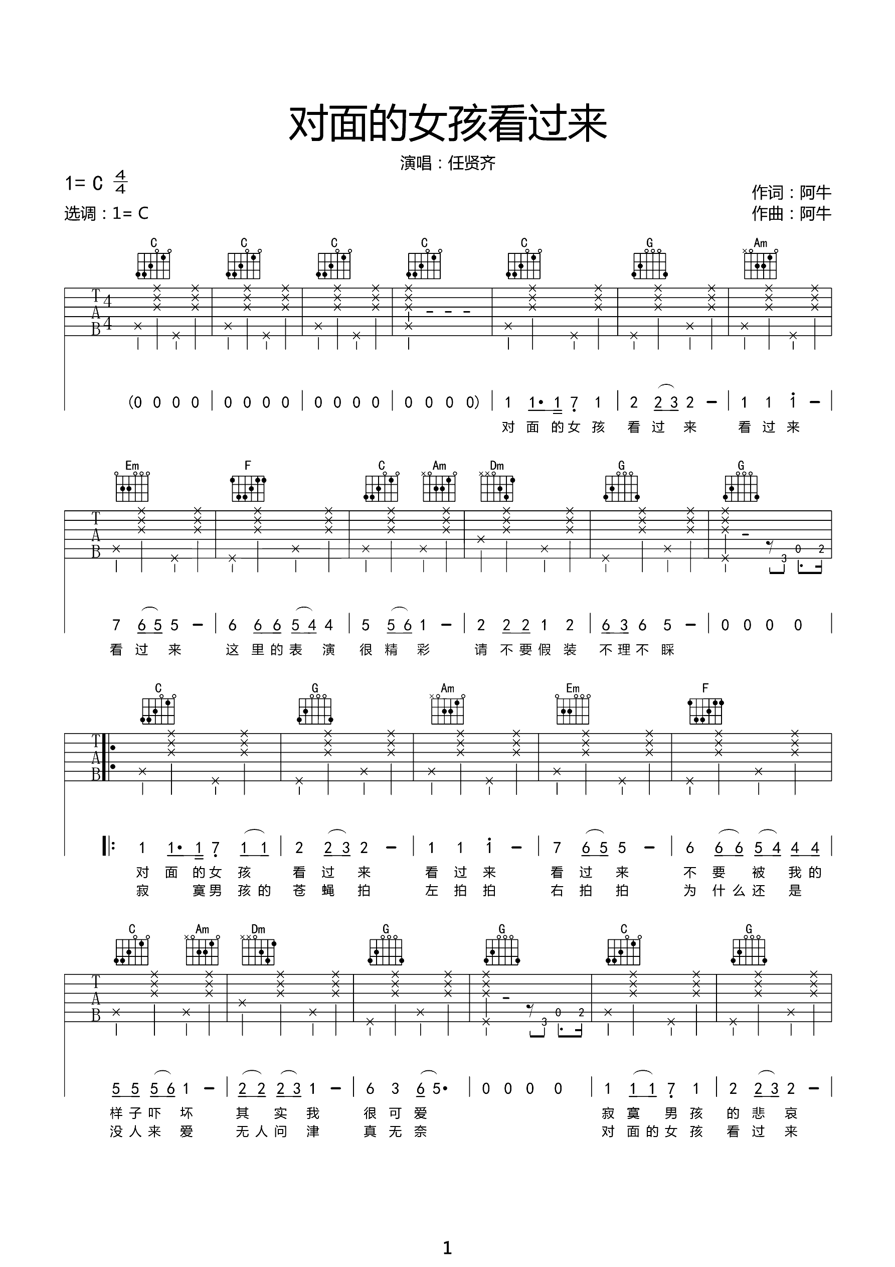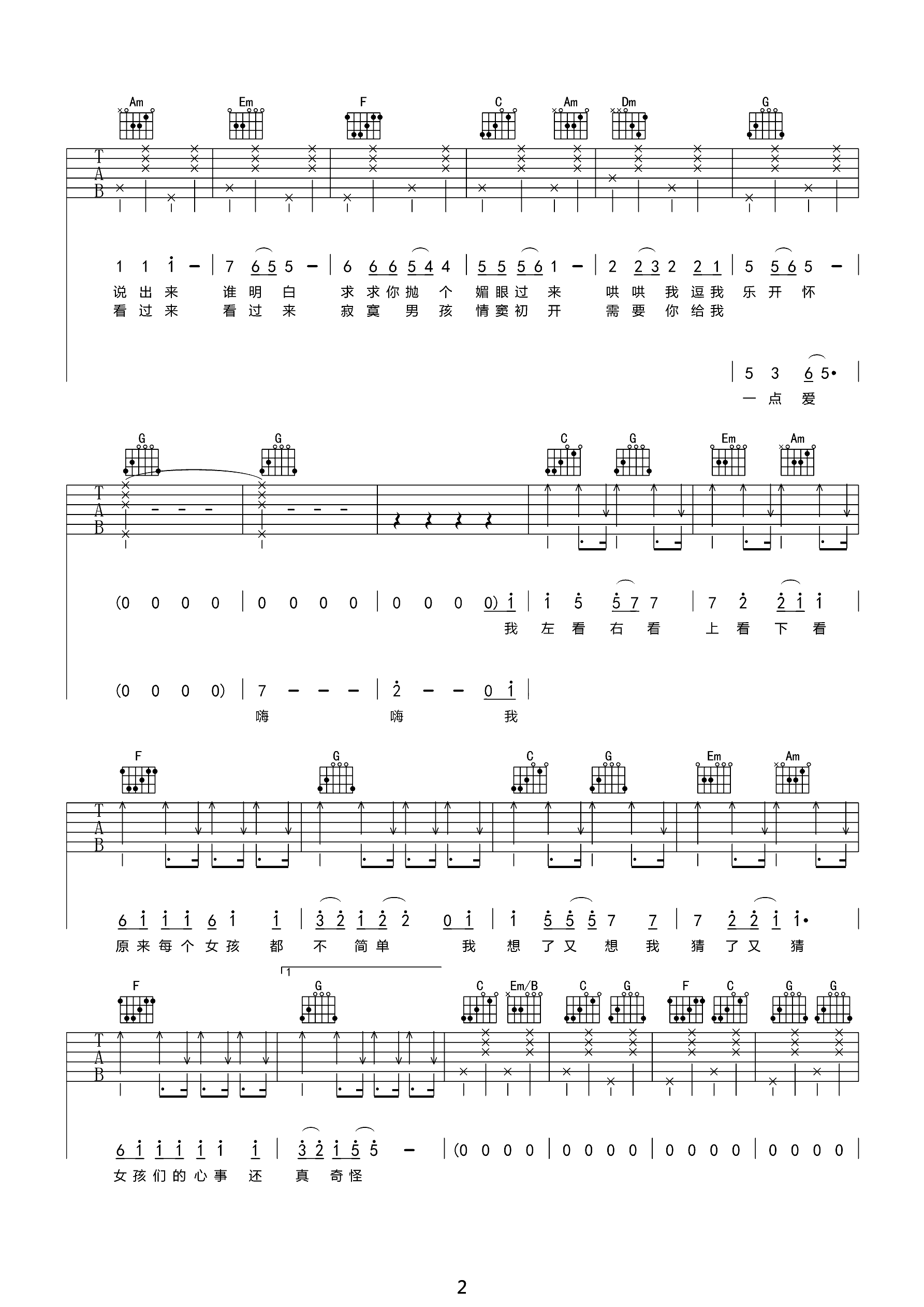 吉他谱 | 热门弹唱《对面的女孩看过来》