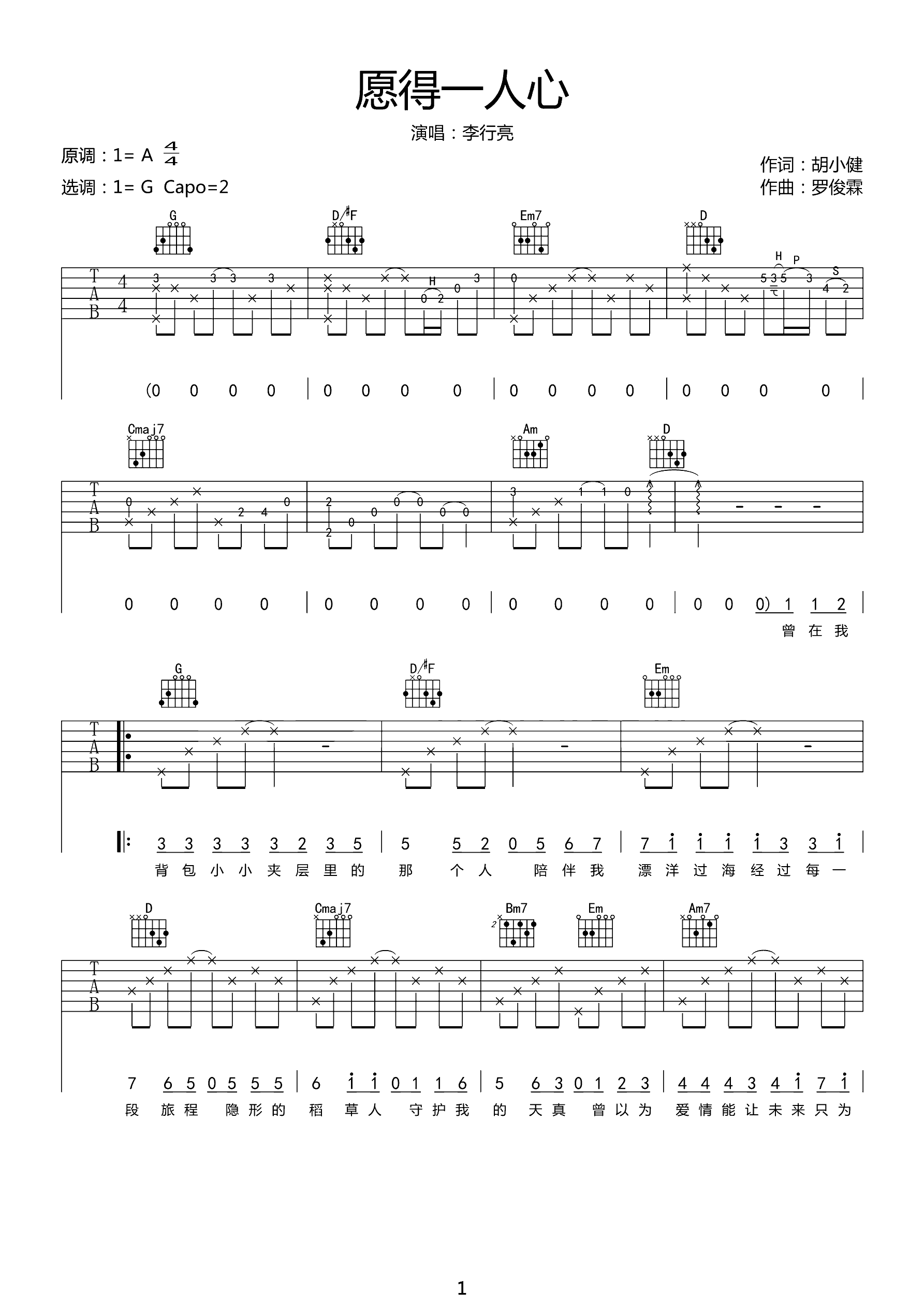 吉他谱 | 热门弹唱《愿得一人心》