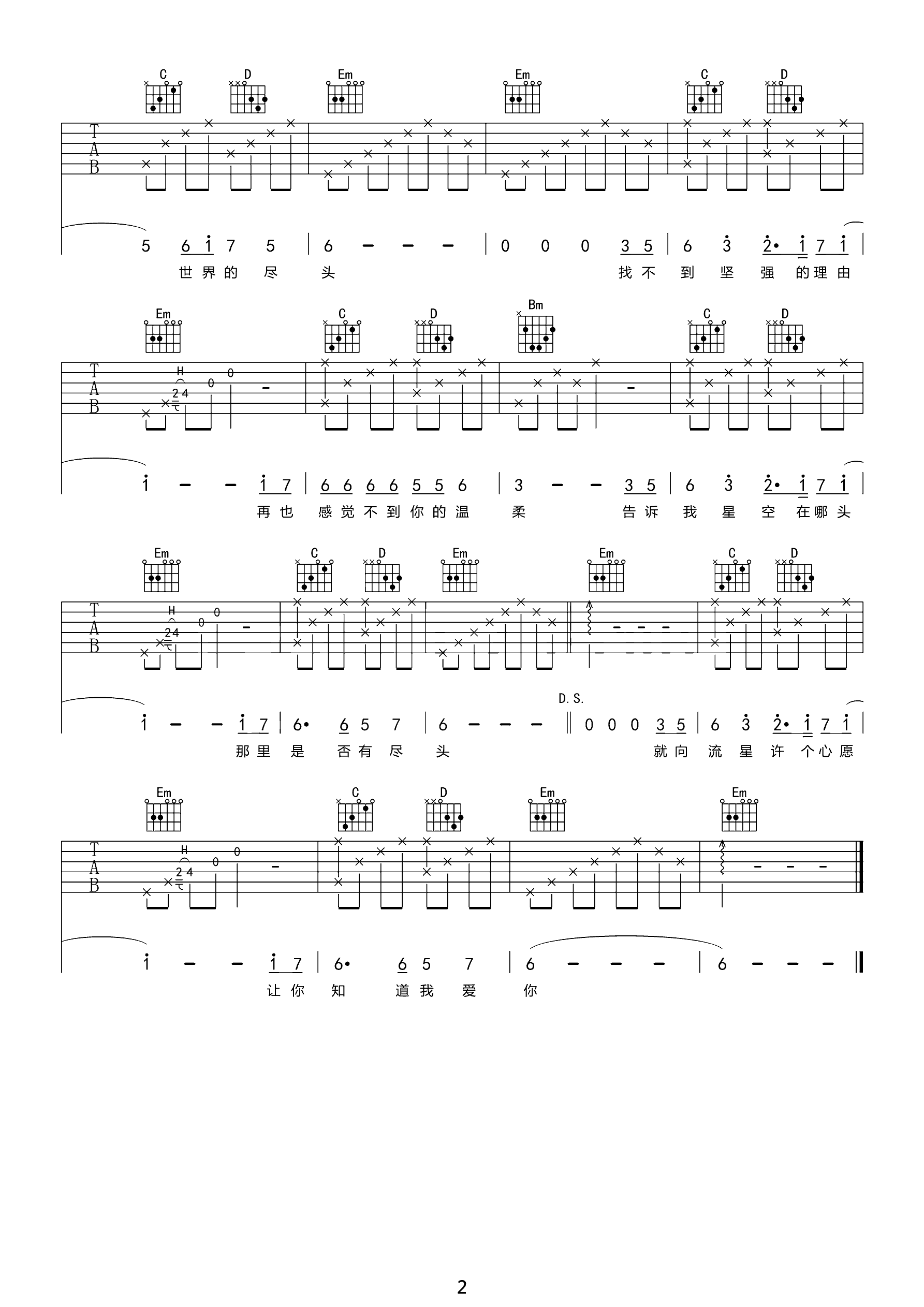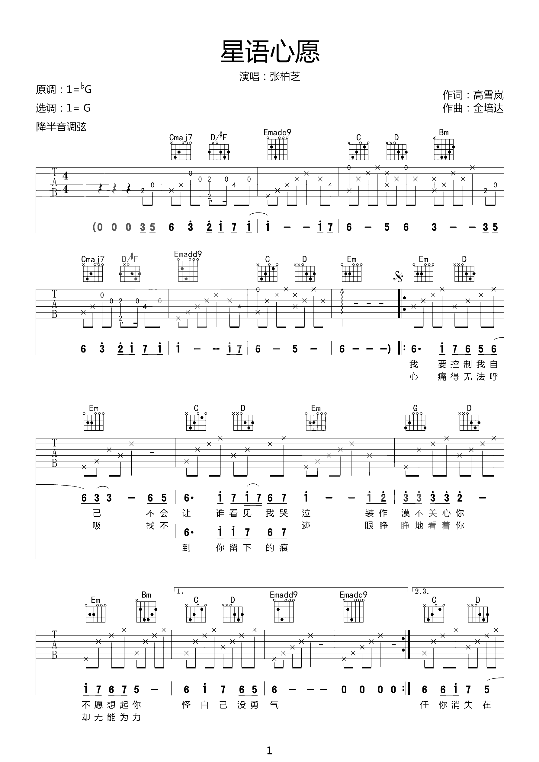 空白格吉他谱_杨宗纬_G调弹唱谱_带前奏