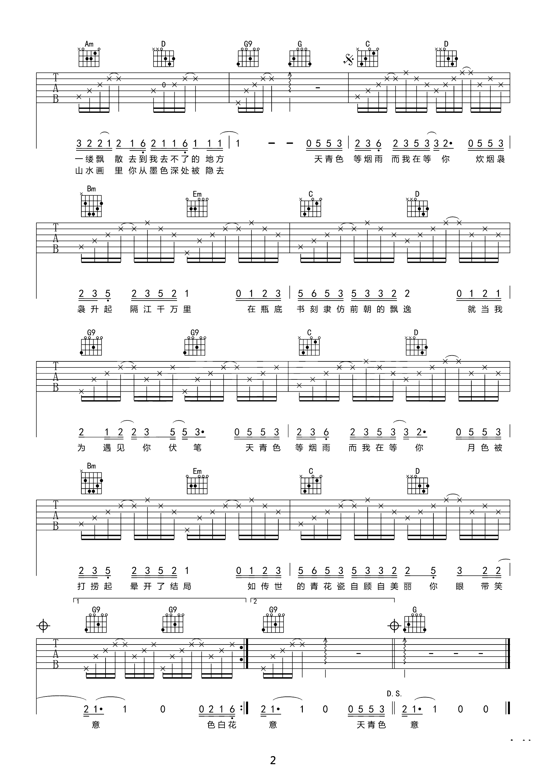 虞兮叹吉他谱_闻人听书_G调弹唱谱_古风