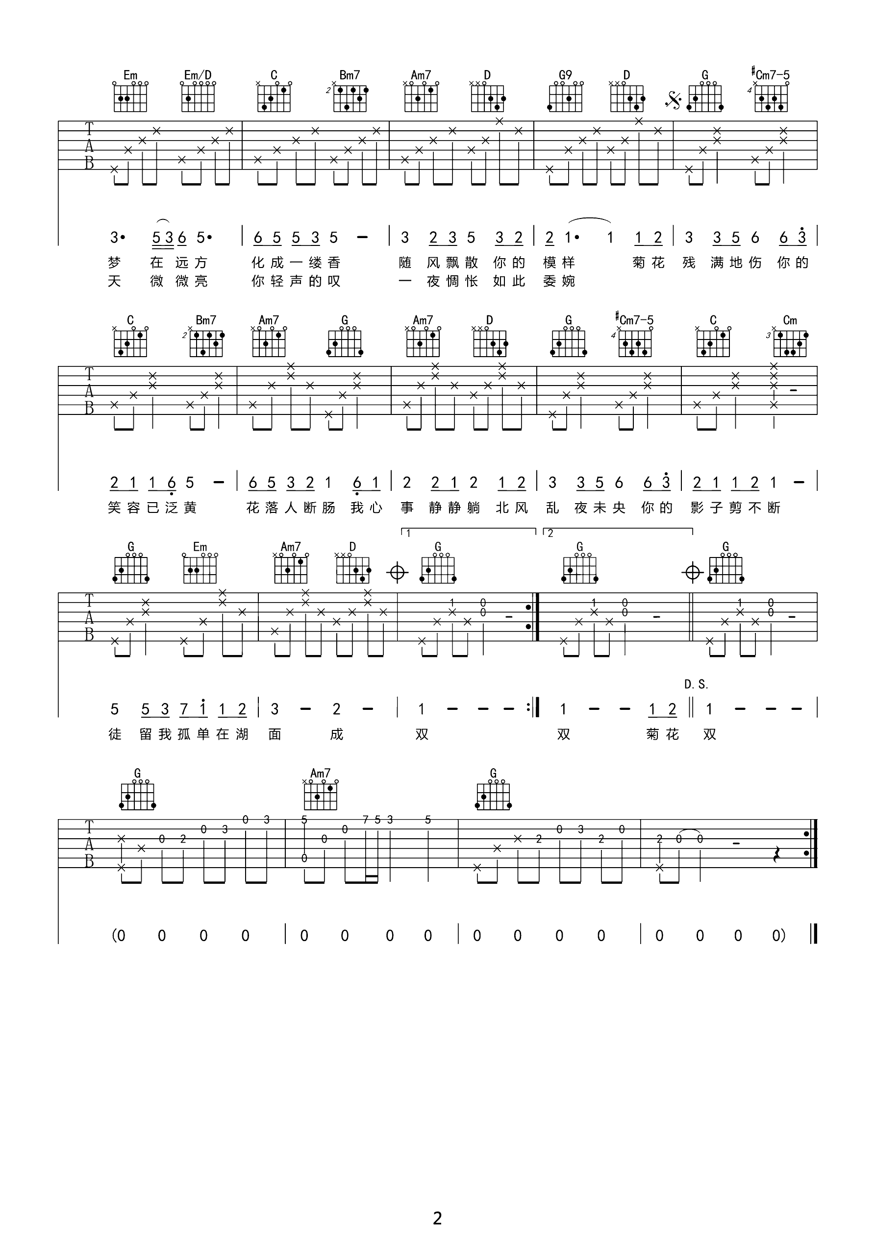 吉他谱 | 热门弹唱《菊花台》