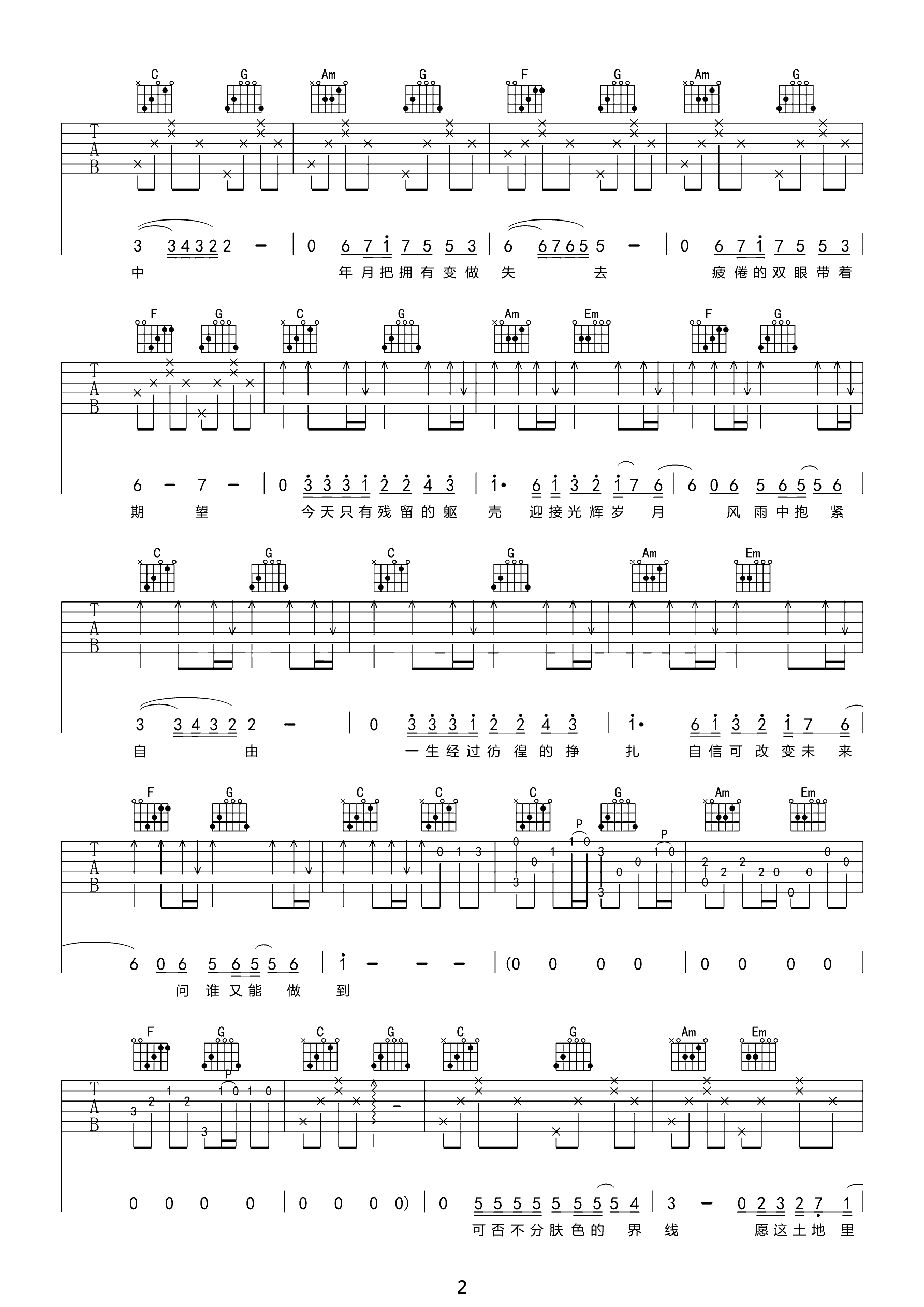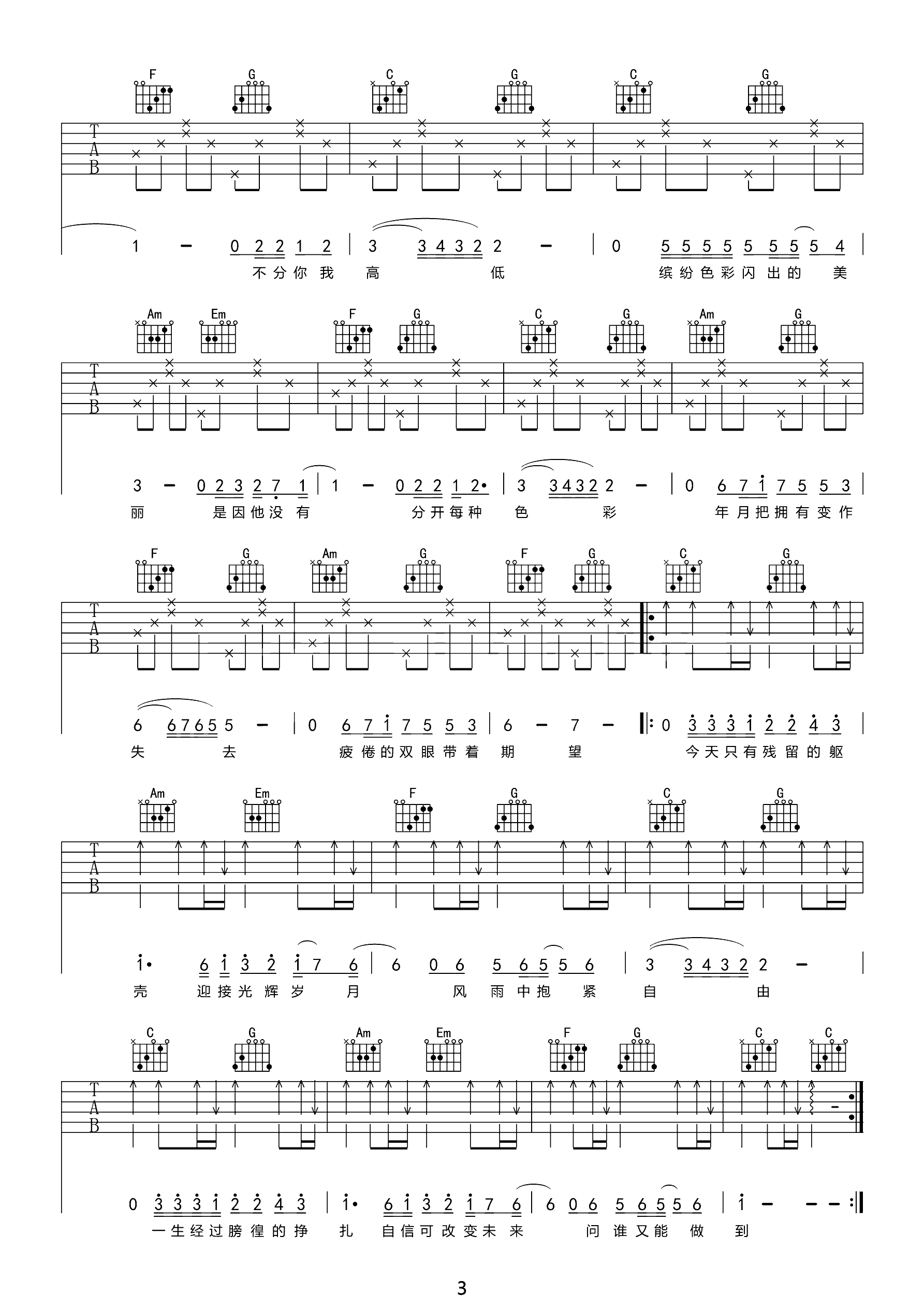 外愈吉他谱 任然 C调六线谱 吉他弹唱演