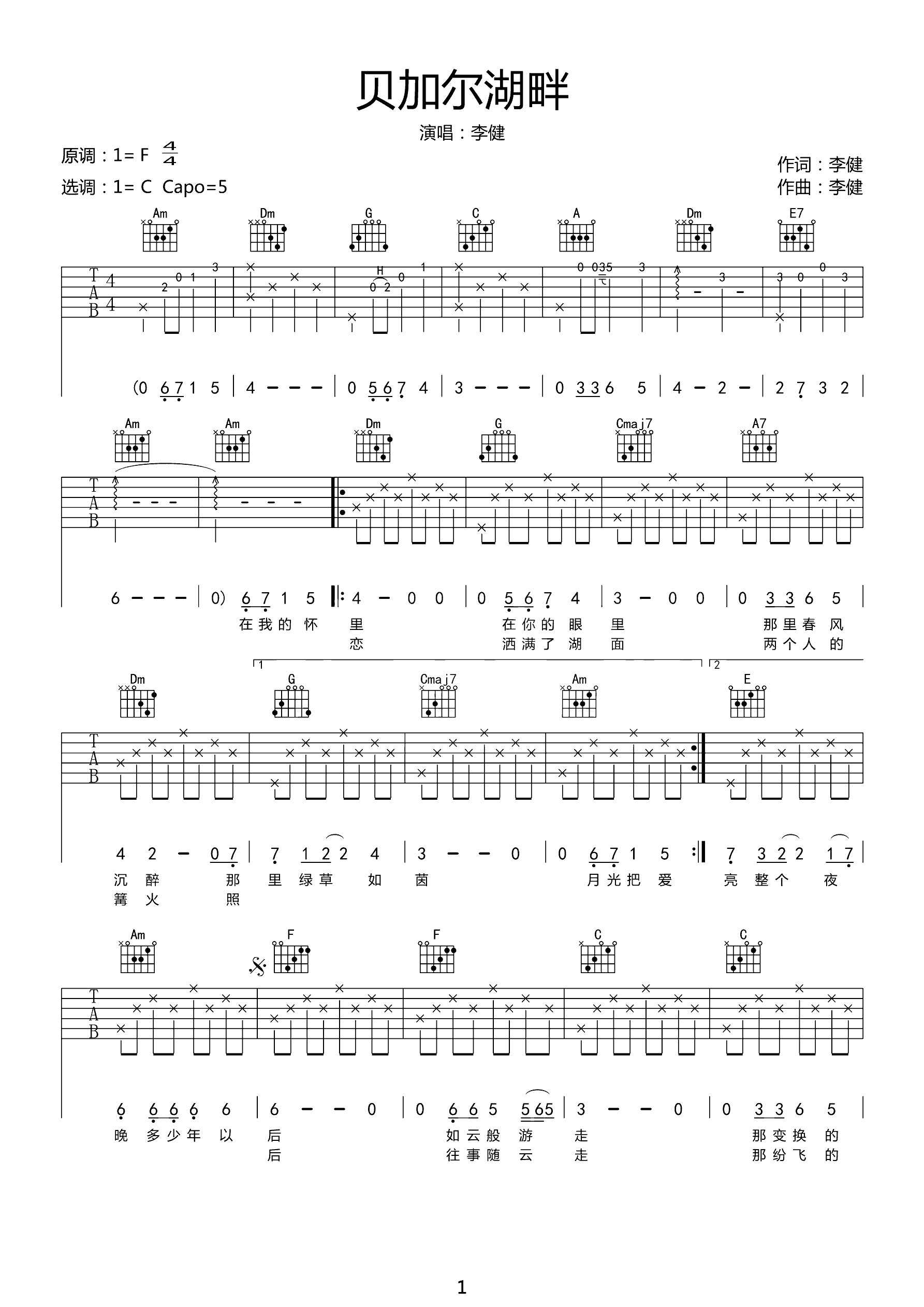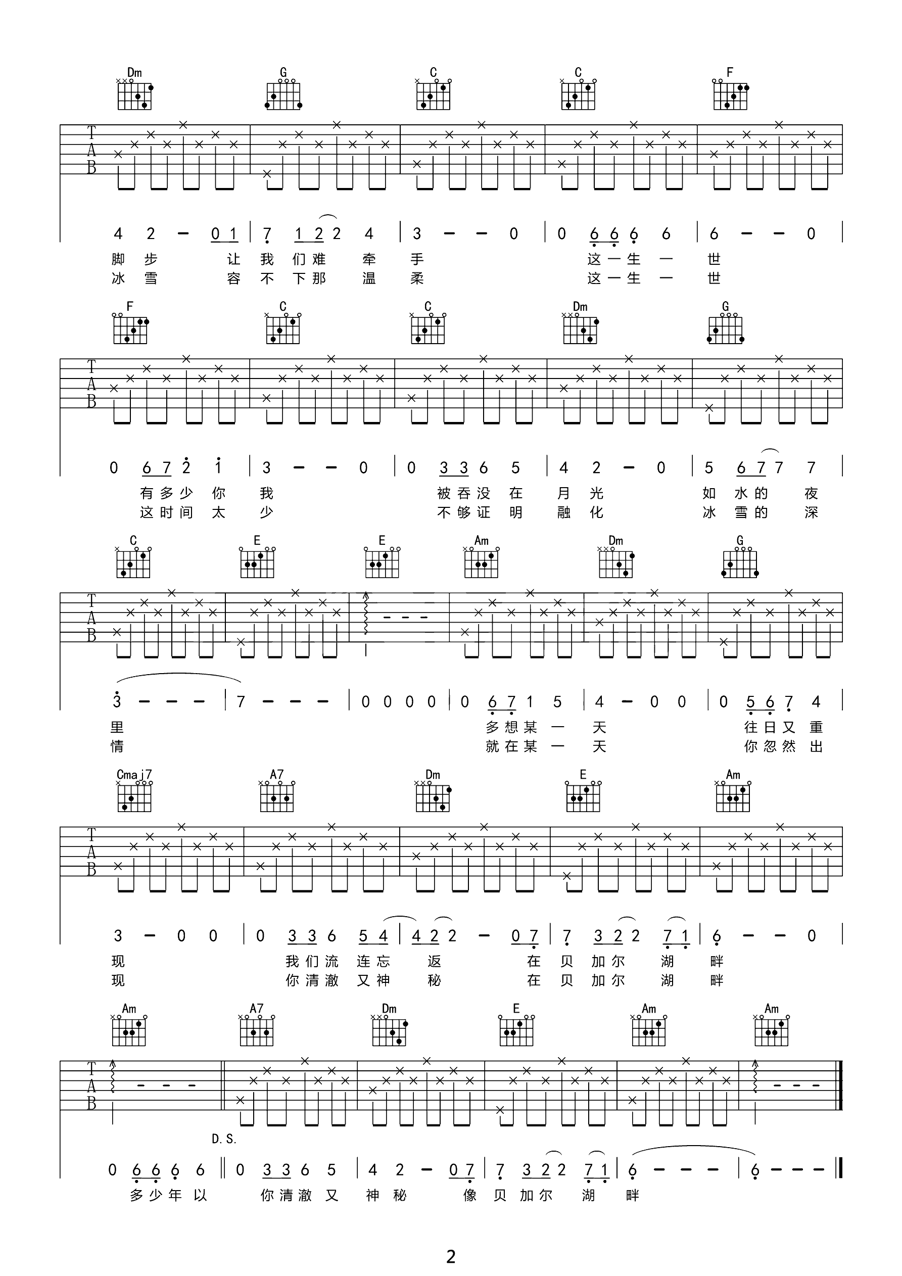 吉他谱 | 热门弹唱《贝加尔湖畔》