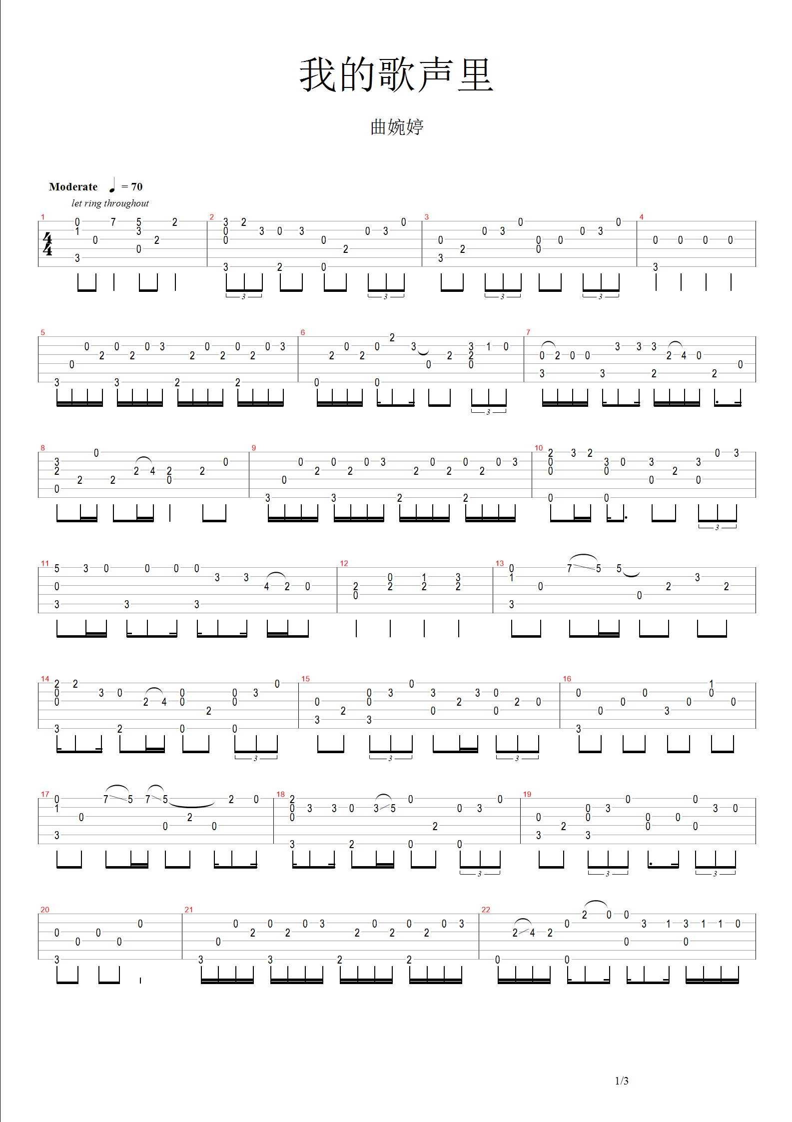 吉他谱 | 经典指弹《我的歌声里》