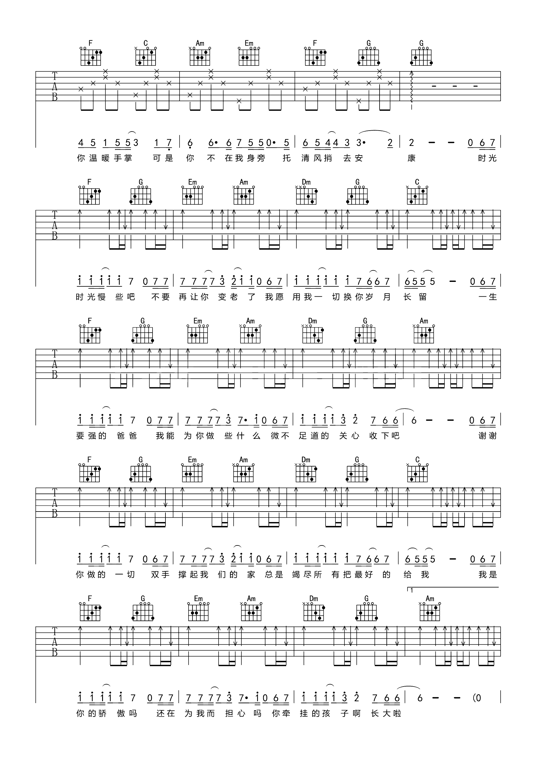 吉他谱 | 热门弹唱《父亲》