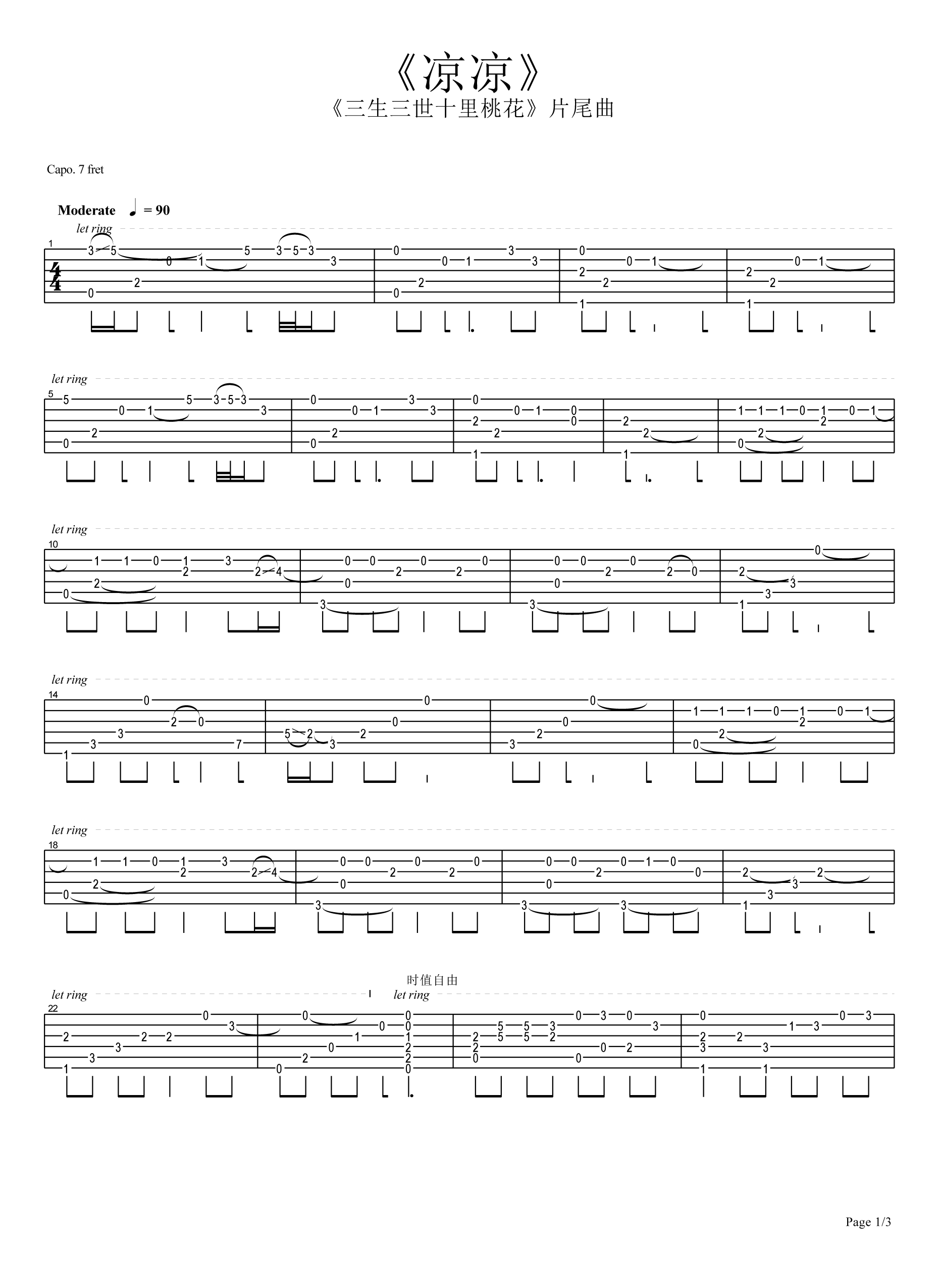 吉他谱 | 经典指弹谱《凉凉》