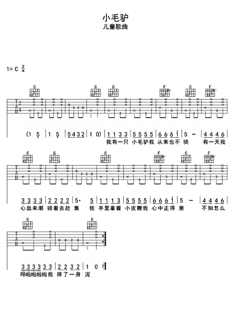 吉他谱 | 入门弹唱《小毛驴》