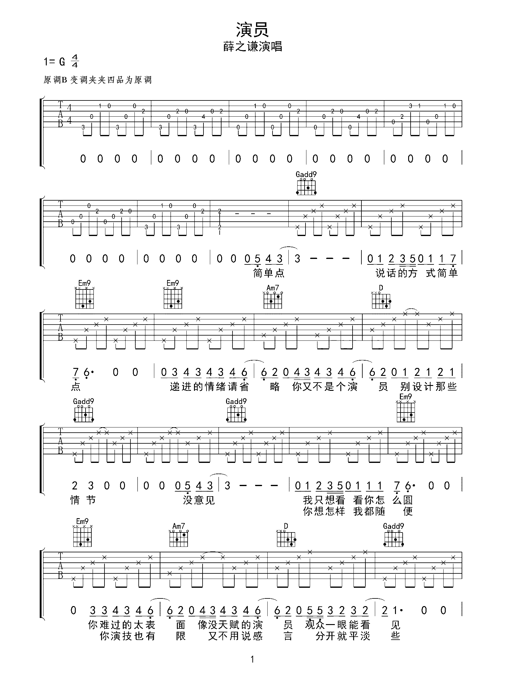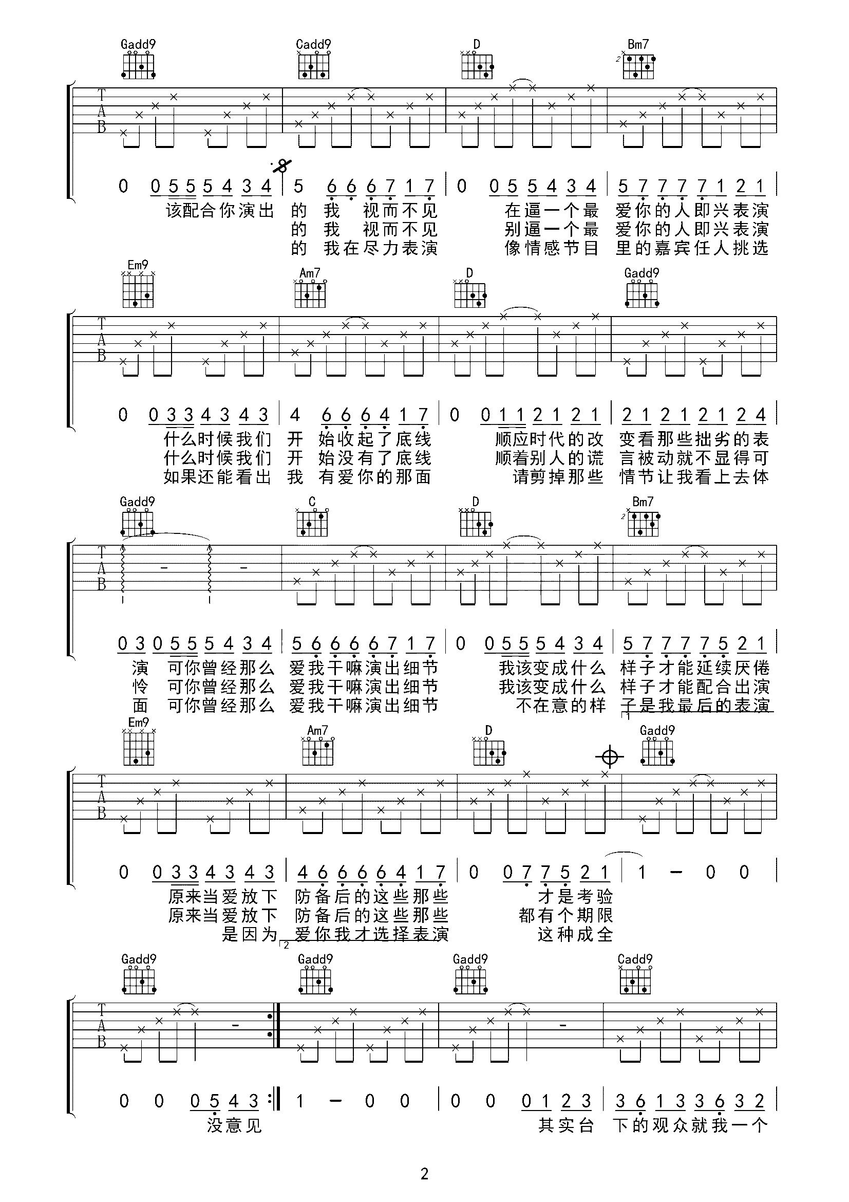 吉他谱 | 热门弹唱《演员》