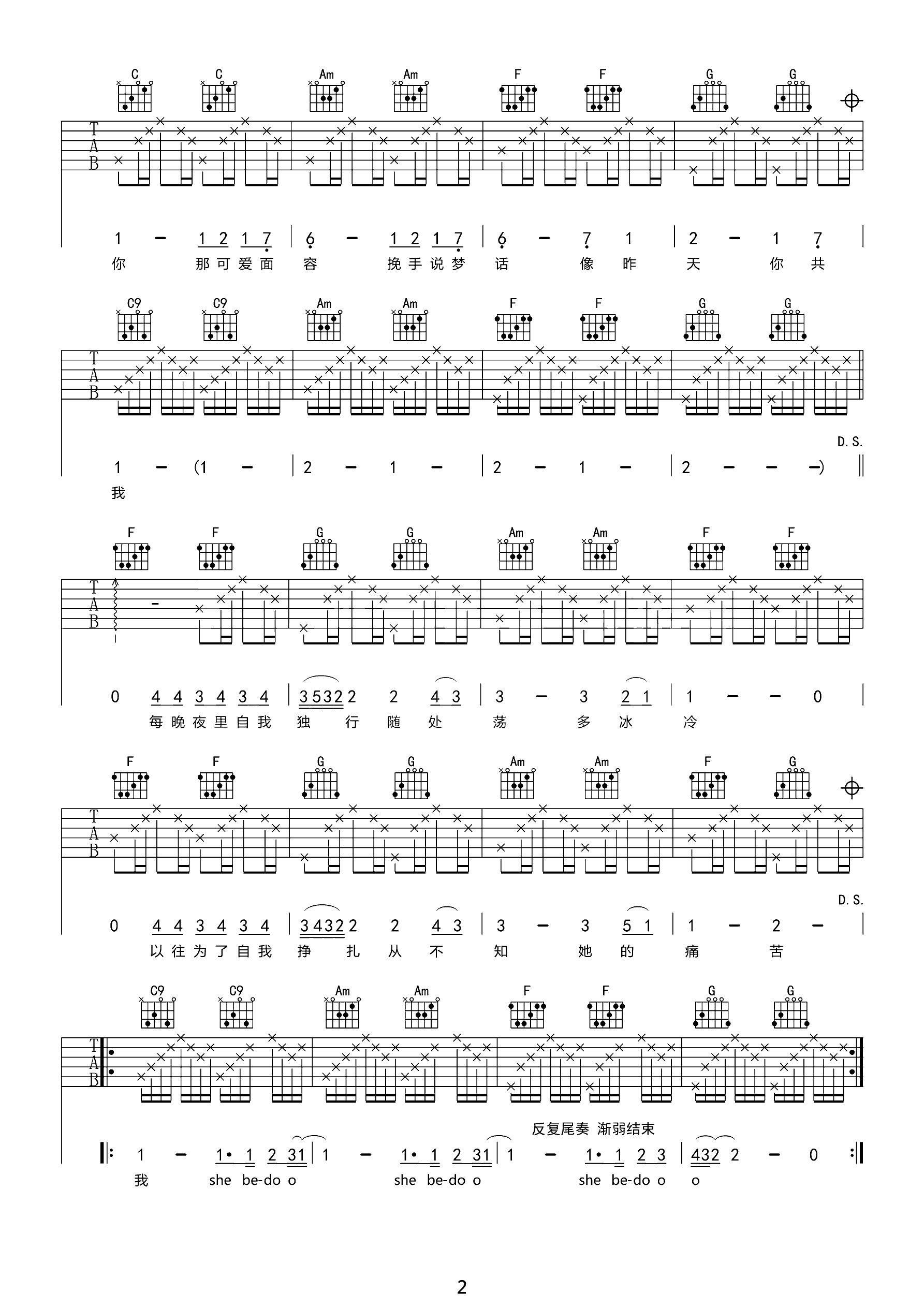 只要你还在吉他谱