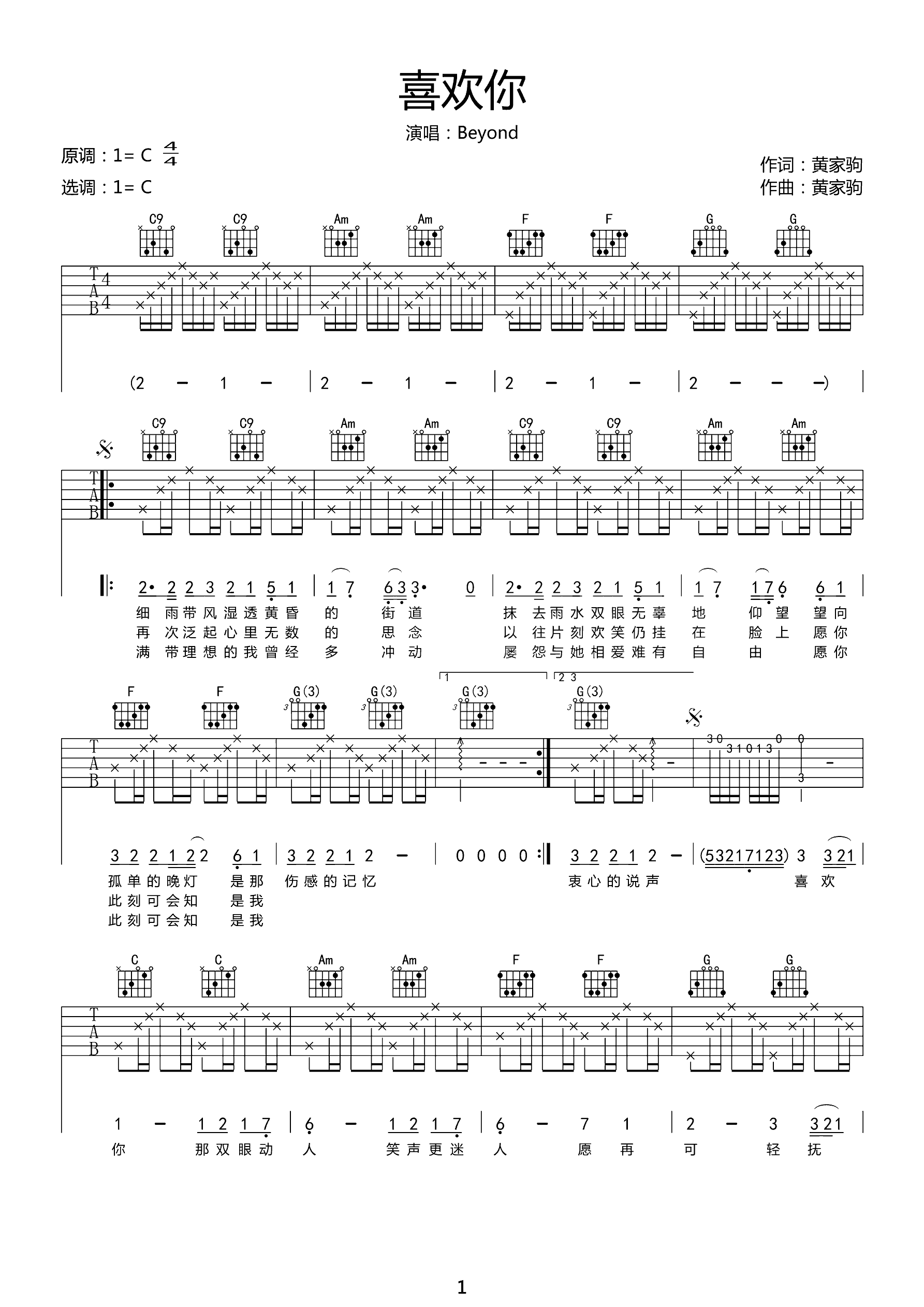 吉他谱 | 热门弹唱《喜欢你》