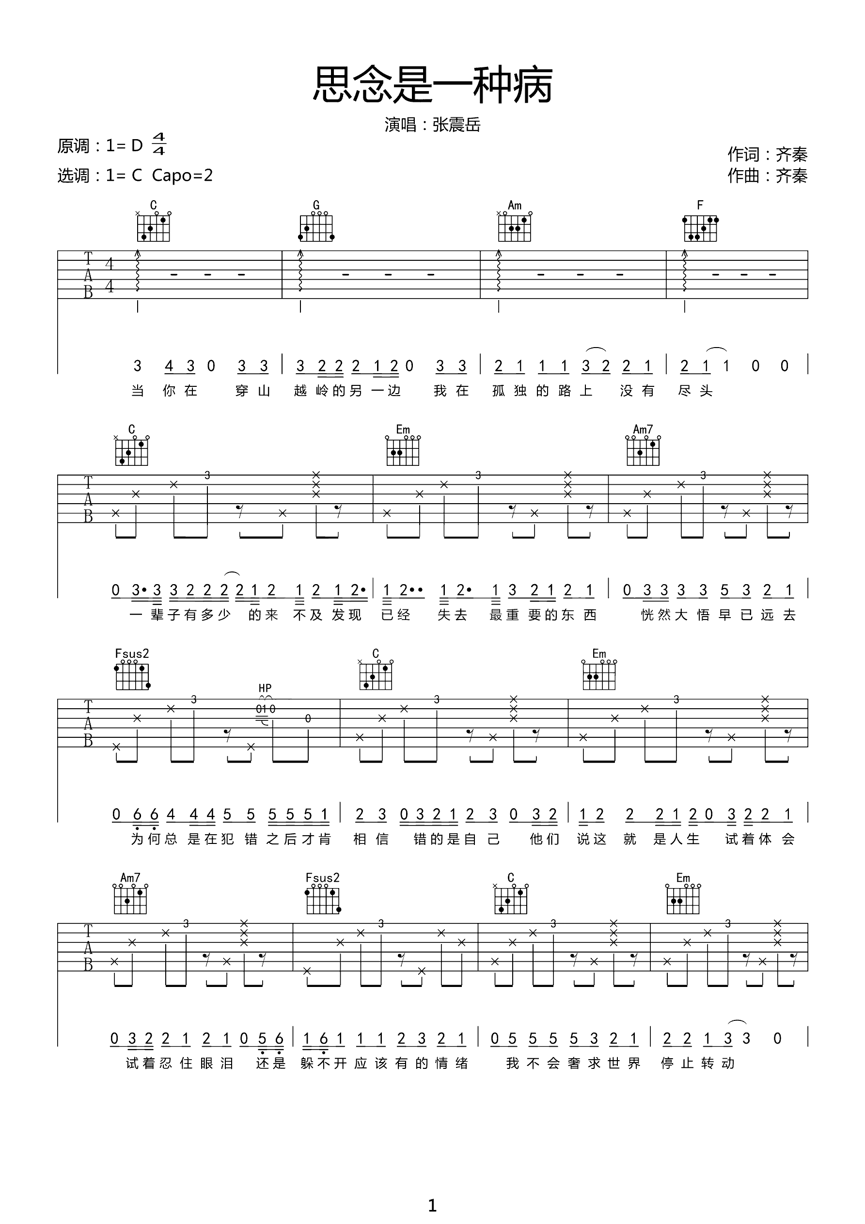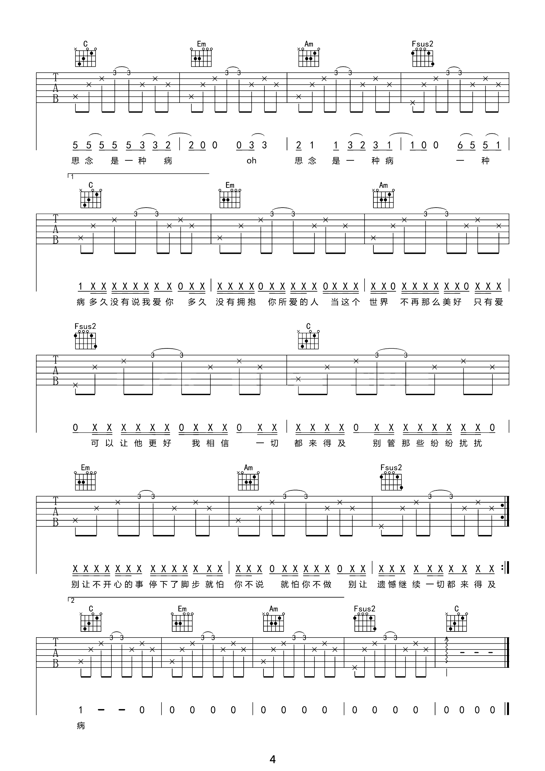 十二吉他谱 留声玩具 C调六线谱 高清弹