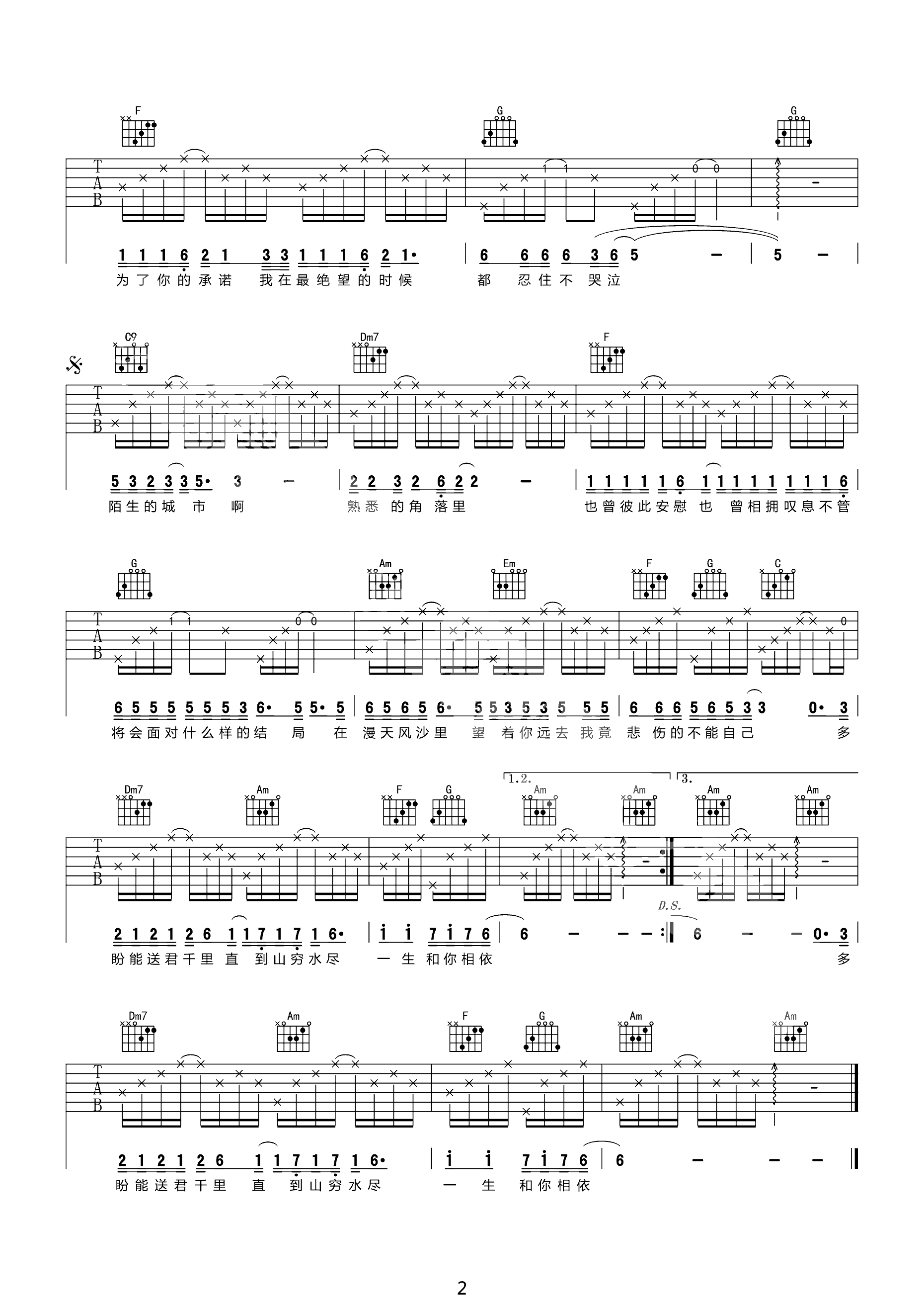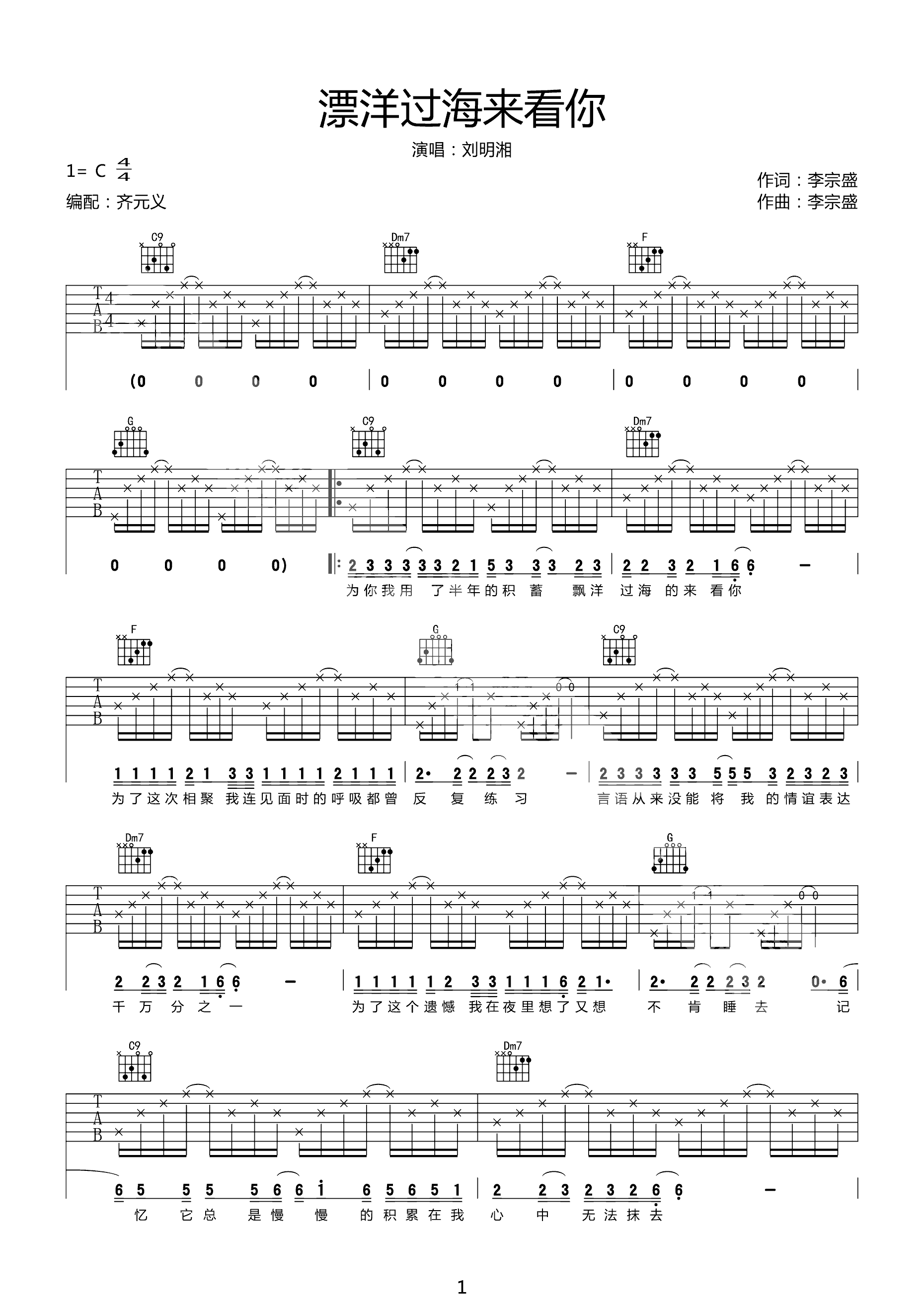 吉他谱 | 热门弹唱《漂洋过海来看你》
